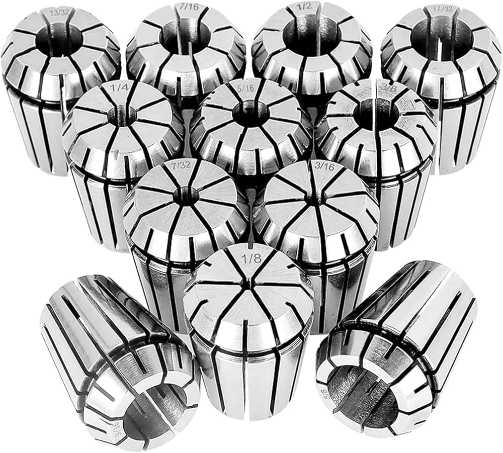✅14 Size - Collet set gripping range: 1/16, 3/32, 1/8, 5/32, 3/16, 7/32, 1/4, 9/32, 5/16, 11/32, 3/8, 13/32, 7/16, 1/2. Finishing process to ensure the precision of product size accuracy.