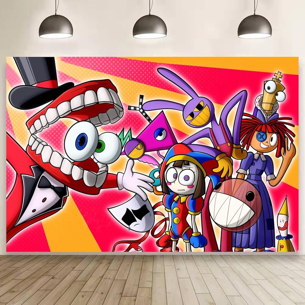The Amazing Digital Circus Birthday Backdrop, 5x3ft Birthday Banner for Kids Party Supplies Decoratiions