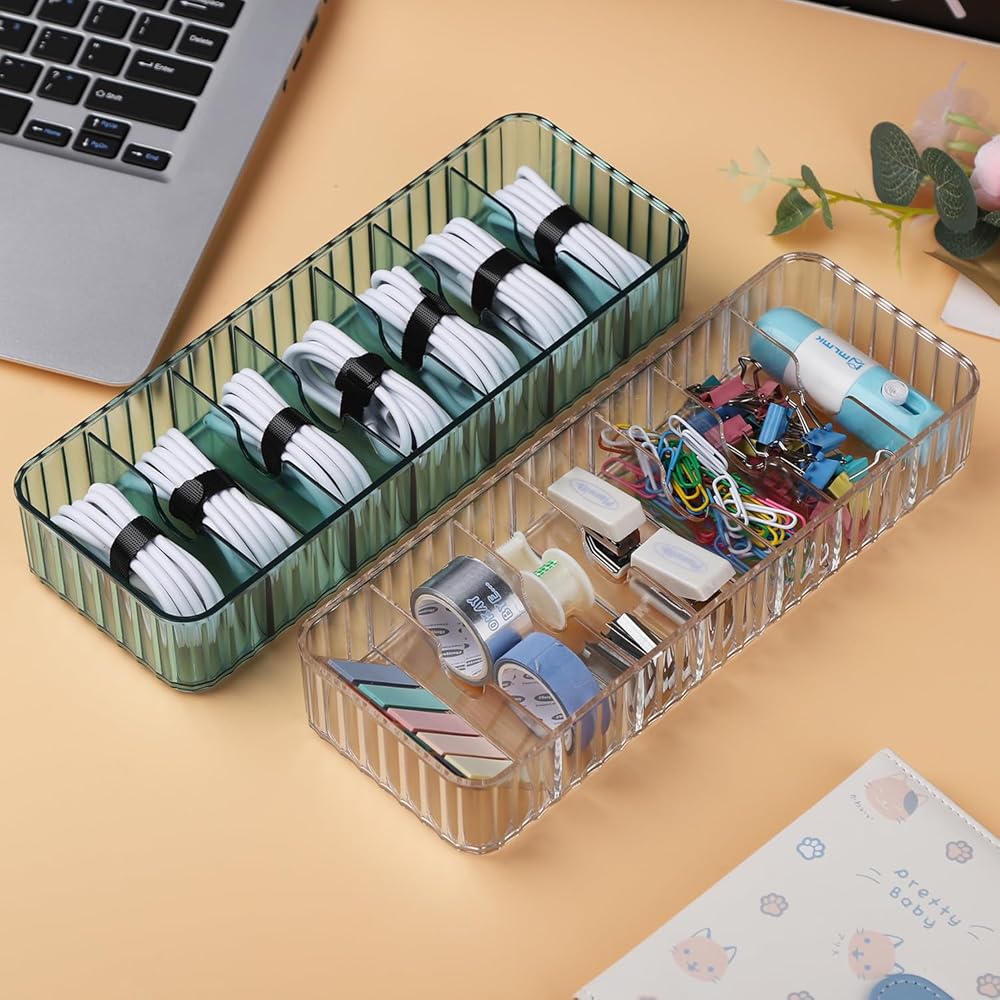 RAMFIYN 2 Pack Clear Charger Organizer, Clear Charging Cord Organizer Box with 20 Pcs Cable Ties 6 Compartment