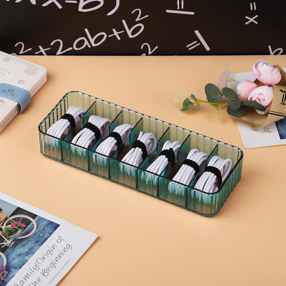 Material - Made from premium PS plastic material, clear transparent, sturdy & holds a lot. Unique U-shaped designed compartment separators make it easy to taking out the cable in the box.