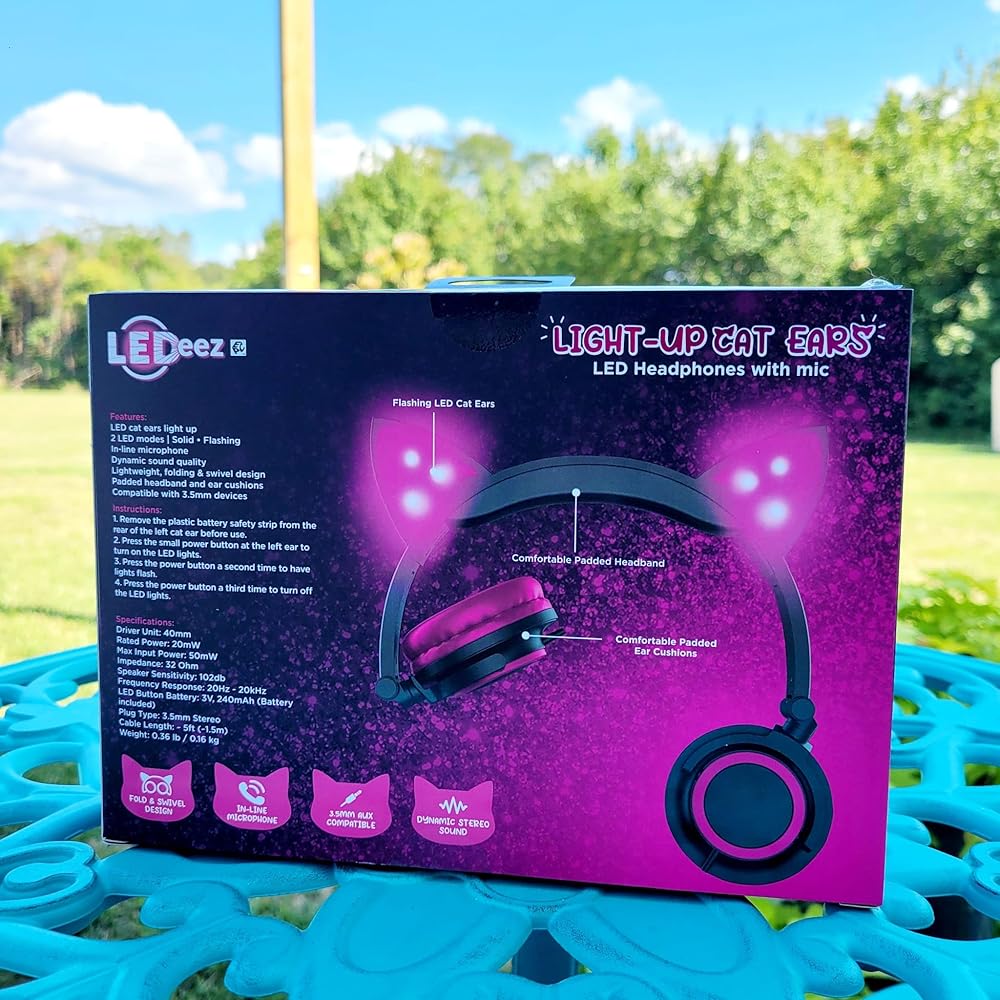 Enjoy high-quality sound in style! Our super cute and fashionable Pink LED cat headphones have ultra bright light-up LED ears to make listening to music fun, especially at night! Dynamic stereo sound provides high-quality sound, while foam cushioning pads provide long-lasting comfort for your ears. Enjoy your favorite movies or songs with a comfortable, fatigue-free listening experience for extended periods of time. The built-in microphone allows you to take phone calls or chat online so you?re always connected. These headphones come with a 3.5mm jack plug for easy plug and play that is compatible with all 3.5mm interface devices like mobile phones, tablets, desktops, laptops, game consoles, etc. These wired headphones are adjustable to ensure the perfect fit for any head shape. The fold and swivel design makes it convenient to carry in a suitcase or bag as it folds for easy storage. Whether you're using them on-the-go or in the comforts of your own home, these stylish headphones are perfect anytime, anywhere!