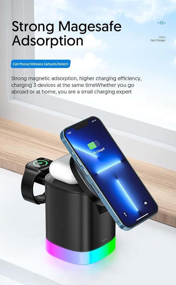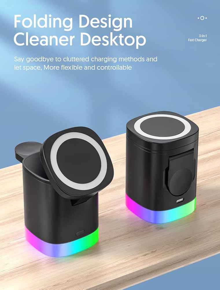 【محطة شحن لاسلكية قابلة للطي】لا تتمتع بوظيفة الجذب المغناطيسي فحسب، بل يمكنها أيضًا شحن الهواتف المحمولة بتقنية QI اللاسلكية عند وضعها أفقيًا، ومناسبة لجميع أنواع الهواتف المحمولة QI، ومحطة شحن لاسلكية سريعة 15 وات متوافقة مع iphone 14/14 Mini/ 14 برو/14 بلس/14 برو ماكس؛ 13/13 ميني/13 برو/13 برو ماكس؛ 12/12 ميني/12 برو/12 برو ماكس؛ 11/11 برو/11 برو ماكس؛ XS/XS Max/XR/X/8/8Plus، iWatch Series Ultra/SE/8/7/6/5/4/3/2، AirPods Pro/3/2/Samsung Galaxy Buds/Buds+/Buds Pro/Live /2; توافق واسع لمعظم الأجهزة، لسلسلة Samsung Galaxy S22 S21 S20/+/FE/Ultra، S10/S9/S8/S7/S6؛ Z فليب، فليب 3، فولد2، فولد3؛ ملاحظة 20،10،10e،10+،9،8،7،5