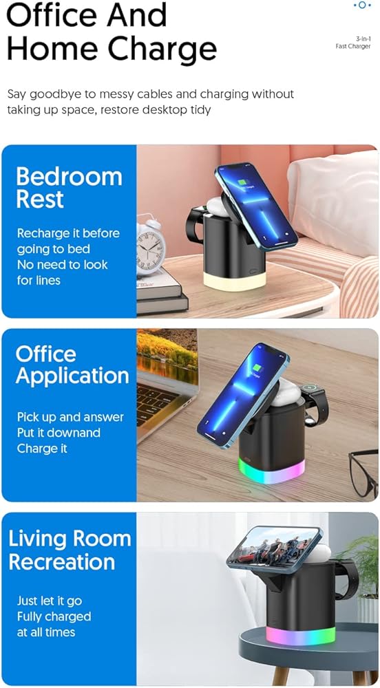 【إضاءة LCD دافئة مع تحكم】: يوفر نموذج الأوراق الجديد هذا ثلاثة مستويات من عرض الضوء. تعمل قاعدة الشاحن اللاسلكي MagSafe التي تمت ترقيتها على حل مشكلة التنقل التلقائي للضوء الناتجة عن الجيل السابق من المنتجات بشكل أساسي وتقدم طبقة من آلية الحماية لمكونات المنتج لتجنب الإزعاج في الحياة الليلية. إنه خيارك الأول لمنزلك.