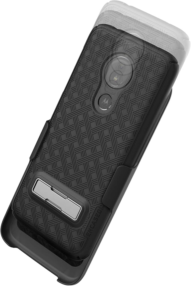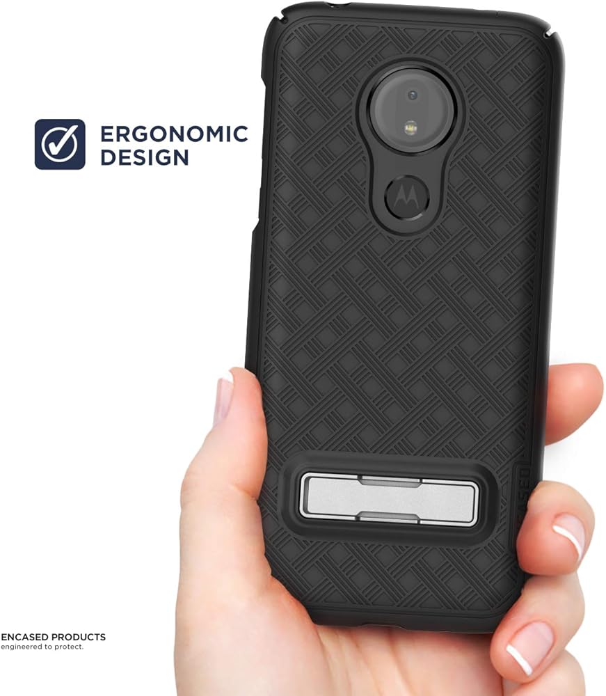 حافظة حزام الطاقة Moto G7 مع مسند (2019 Slimline) غطاء رفيع للغاية مع مشبك حافظة - أسود