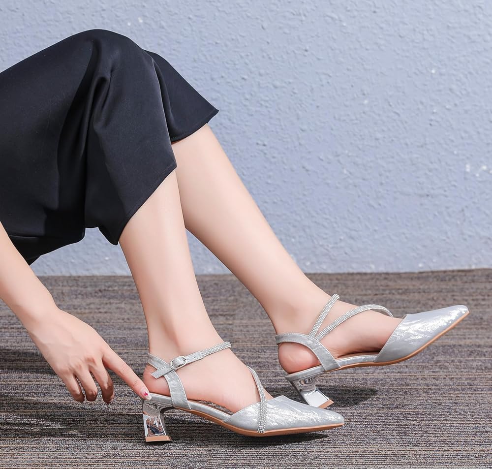 【أحذية أنيقة بحزام خلفي】: أحذية نسائية بتصميم خلفي ومقدمة مدببة مغلقة تخلق وهمًا بأرجل أطول. انزلق إلى حالة ذهنية مريحة ورائعة مع هذه المضخات. تصميم بكعب سميك 2.2 بوصة مع حزام كاحل مزين بأحجار الراين، من الجينز إلى التنانير والبدلات، يمكن أن يناسب بسهولة جميع أنواع الملابس في خزانة ملابسك.