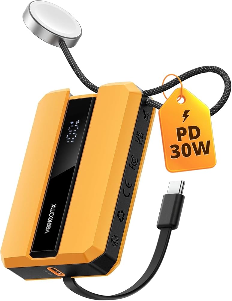 ⚡【بنك طاقة لهاتف iPhone وساعة Apple 】تم تصميم بنك الطاقة المحمول VEEKTOMX مع كابل مدمج لسلسلة iPhone، بما في ذلك iPhone 14/13/12/11/8/7/6/6s/Pro/Max/Mini/ XS/XR/X وiPad وAirPods وMacbook المزيد. (باستثناء سلسلة iPhone 15) شاحن iwatch المحمول لساعة Apple Watch 9/8/7/6/ 5/4/3/2/1/Ultra/SE. (ملاحظة: إذا كنت بحاجة إلى شاحن محمول لجهاز iPhone 15، فيمكنك اختيار شاحن VEEKTOMX آخر يأتي مزودًا بمقبس شحن من النوع c.)