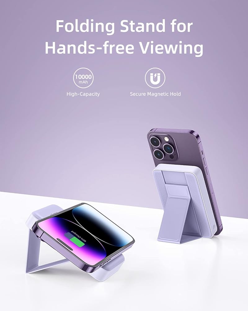 [2 في 1 محمول ومريح] - يمكن شحن شاحن iPhone المغناطيسي الخاص بنا لاسلكيًا بحرية أثناء التنقل وإضافة وظيفة الحامل القابل للطي، والذي يمكن استخدامه كحامل هاتف بعد سحبه، وهو مناسب لمشاهدة مقاطع الفيديو باليدين. -مجاني عند الشحن.