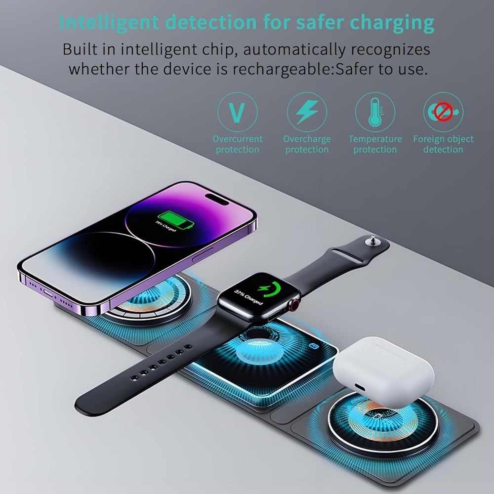 Magnetic Attraction Function: Securely place your devices on the charger with the magnetic attraction feature, ensuring a stable and reliable charging experience.