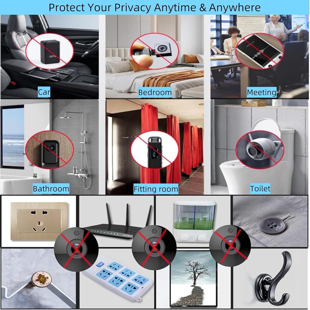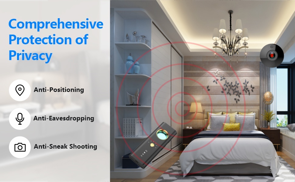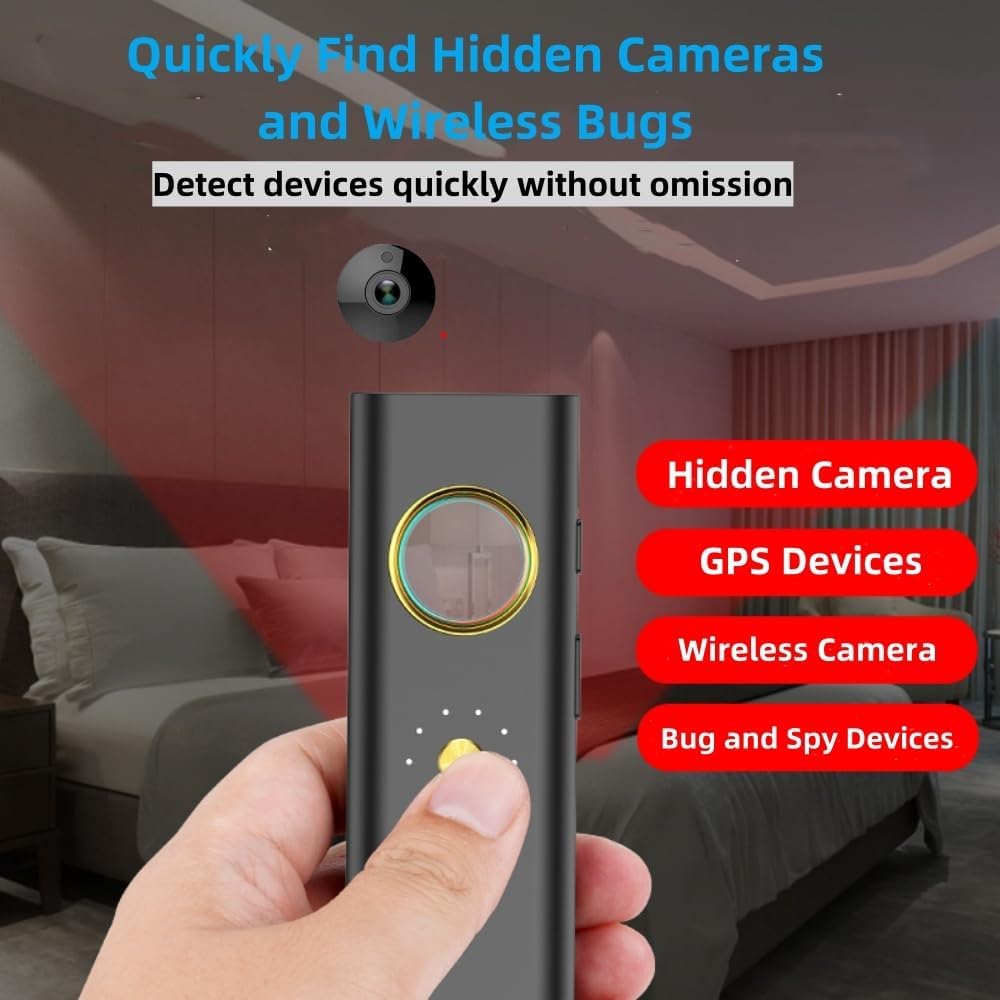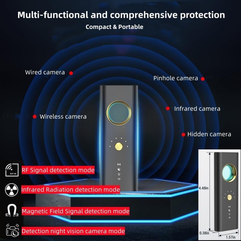 【كاشف الكاميرا الخفية متعدد الوظائف】يتميز كاشف الجهاز السري بأربع ميزات كشف قوية: 1. كشف الكاميرا الخفية: يجد العديد من الكاميرات المخفية؛ 2. كشف إشارة التردد اللاسلكي: يحدد موقع أجهزة إرسال التردد اللاسلكي المباشر بما في ذلك كاميرات إرسال الإشارة وأجهزة تعقب نظام تحديد المواقع العالمي (GPS) والبق اللاسلكي؛ 3. اكتشاف المجال المغناطيسي: يستشعر الانبعاثات الصادرة عن أجهزة تعقب نظام تحديد المواقع العالمي (GPS)؛ 4. كشف كاميرا الرؤية الليلية: يحدد الكاميرات السرية ذات قدرات الرؤية الليلية.
