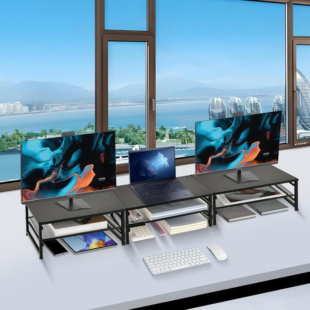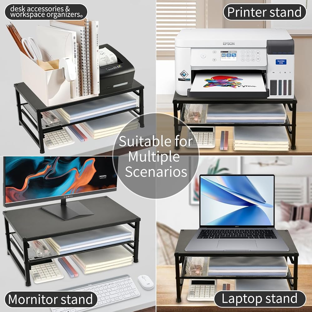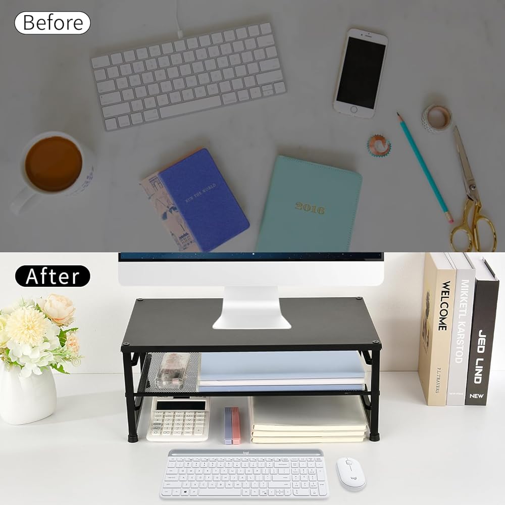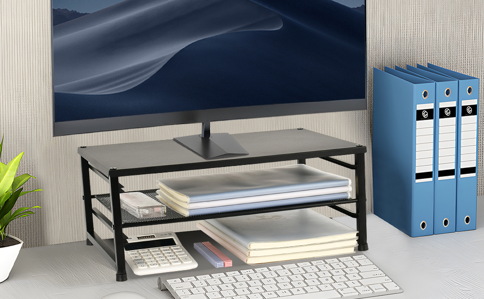 ابدأ رحلة التخزين الخاصة بك على الفور: يوفر منظم المكتب الحديث الكل في واحد حامل كمبيوتر بطبقتين. تحتوي على مساحة تخزين كافية لاستيعاب جميع ملحقات مكتبك. إبقاء الأشياء في متناول اليد مع عدم الإزعاج، مما يحسن كفاءة العمل.