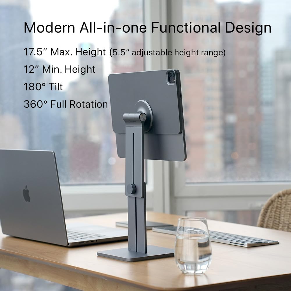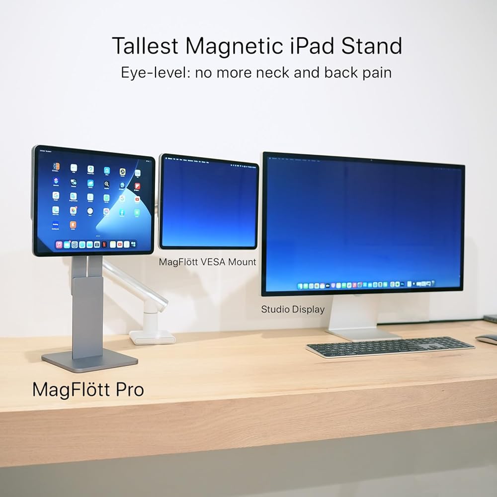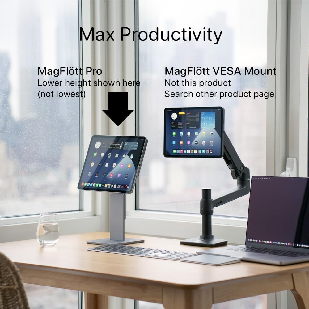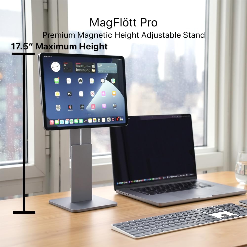 أطول ارتفاع مغناطيسي قابل للتعديل لأجهزة iPad Pro 11 "، iPad Air 11" M3/M2 ، أقصى ارتفاع 17.5 "، لـ iPhone ، يشمل USB C UCUBLE ، MAGFLOTT PRO V2 (11" /10.9) Space Black