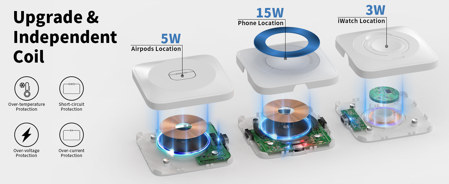 • [حماية متعددة آمنة ومعتمدة من Qi]: الشاحن اللاسلكي معتمد من Qi، مع تقنية الحماية الذكية، وحماية الجهد الزائد، ومنع الدائرة القصيرة، وحماية التيار الزائد والمزيد. شحن آمن، لا داعي للقلق بشأن الإضرار بصحة بطارية جهازك.