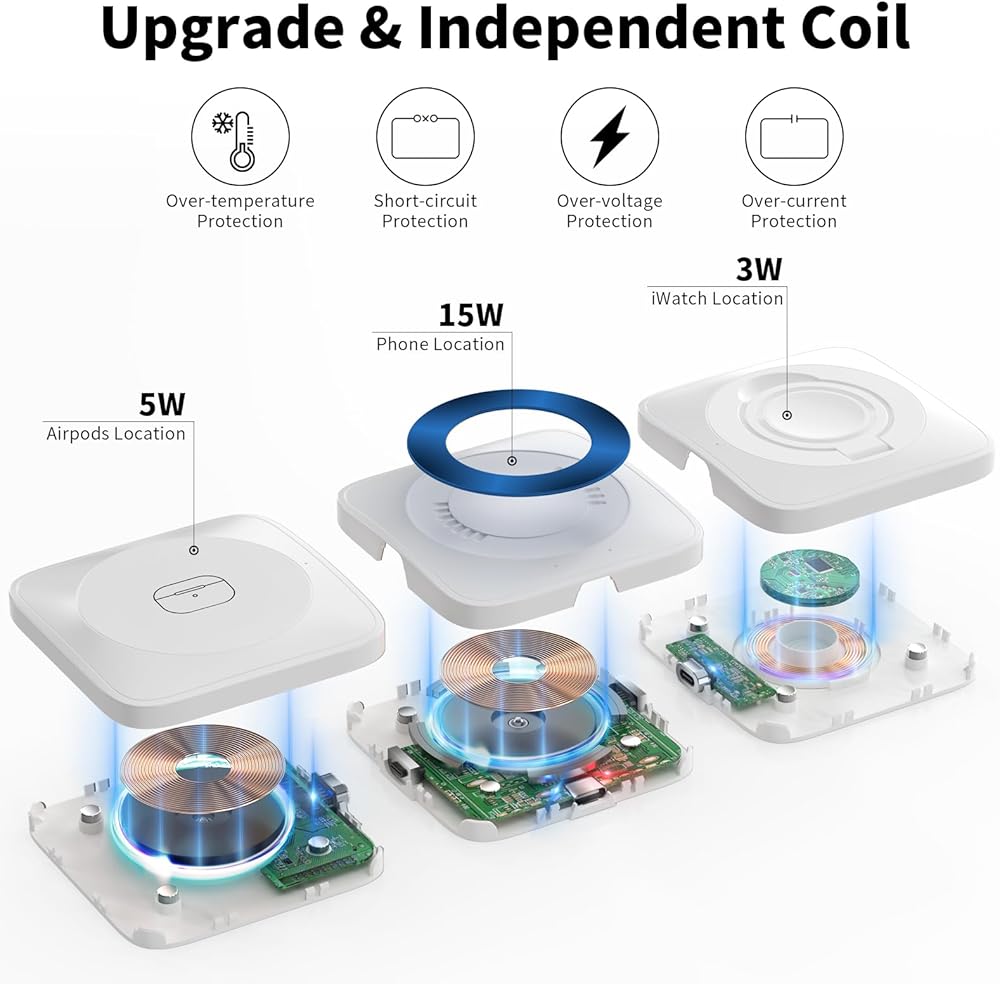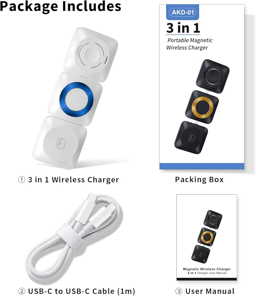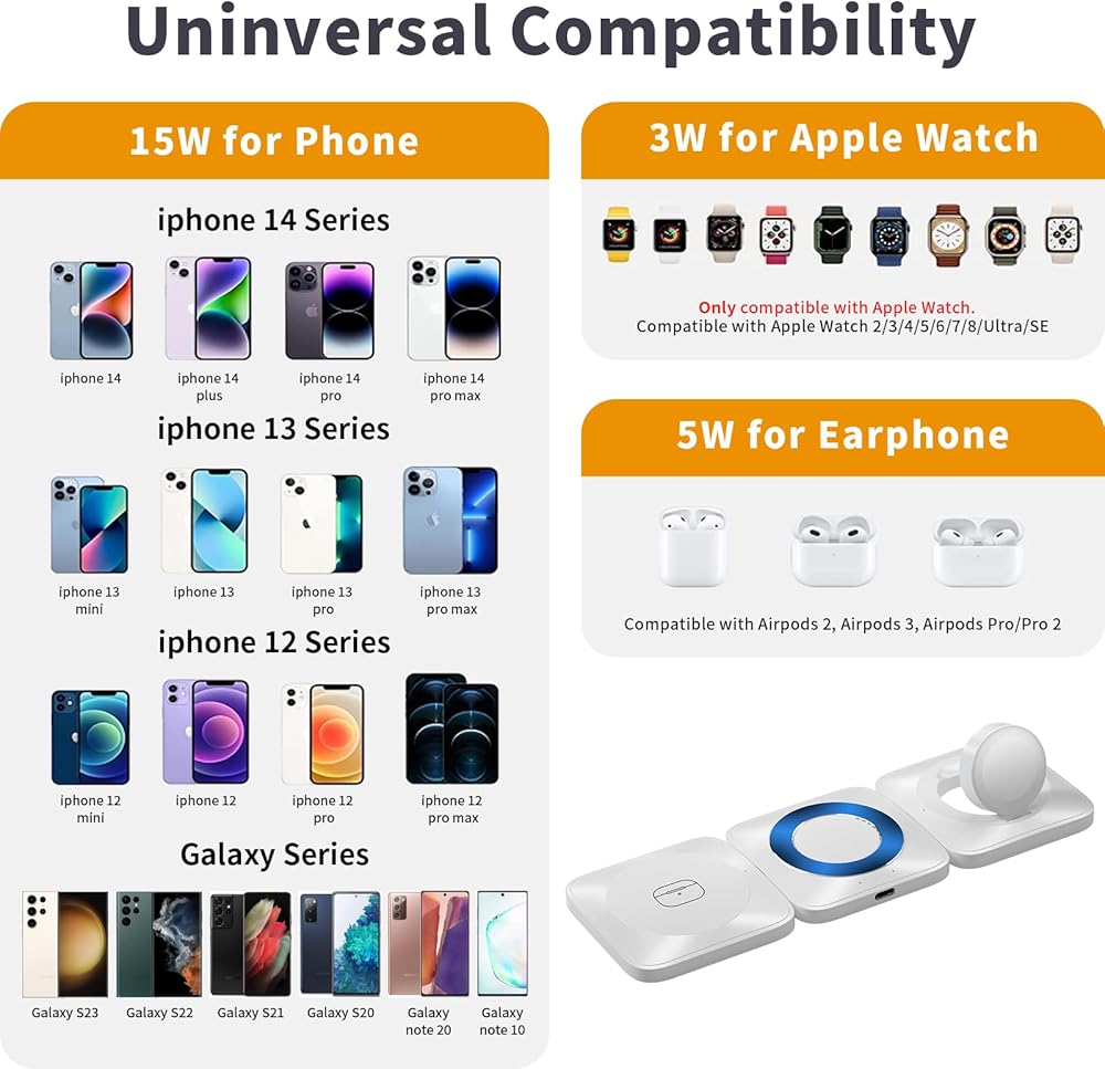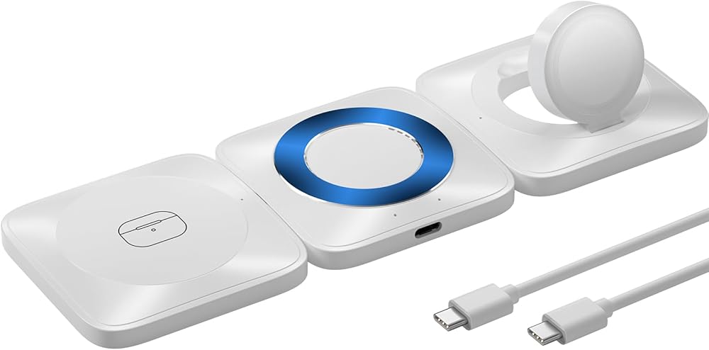 • [شحن لاسلكي 3 في 1]: يمكن للشاحن اللاسلكي المغناطيسي 3 في 1 شحن الهاتف وساعة Apple وAirPods. إنها مناسبة لـ AirPods 2/3، وAirPods Pro/ Pro 2، وApple Watch Series 9/8/7/6/5/4/3/2/SE. يدعم الشحن اللاسلكي لهواتف iPhone وAndroid مع بروتوكول الشحن اللاسلكي Qi.