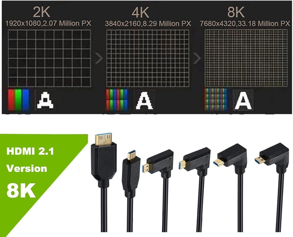 Ultra HD Quality Output. New Micro HDMI to Mini HDMI 2.1 version supports refresh rate up to 8K@60H, resolution up to 7680 x 4320, 33.18 million PX and 120FPS.
