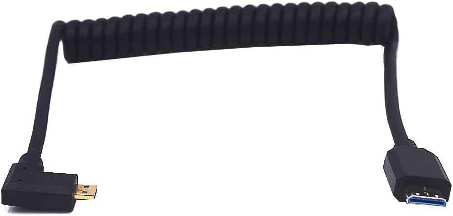 كابل ملفوف Micro HDMI 8K إلى Mini HDMI 8K بطول 4 أقدام، زاوية يسار 90 درجة Micro HDMI 2.1 إلى Mini HDMI 2.1 إصدار محول كابل حماية زنبركي حلزوني، 8K@60HZ