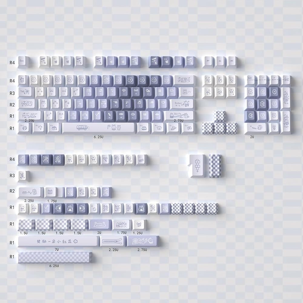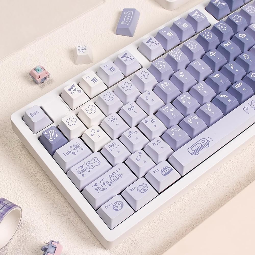 مجموعة أغطية مفاتيح PBT مكونة من 152 مفتاحًا، مجموعة أغطية مفاتيح لطيفة مخصصة مع شريط مسافة 6.25U/7U متوافق مع لوحة المفاتيح الميكانيكية للألعاب Gateron Kailh Cherry MX Switch