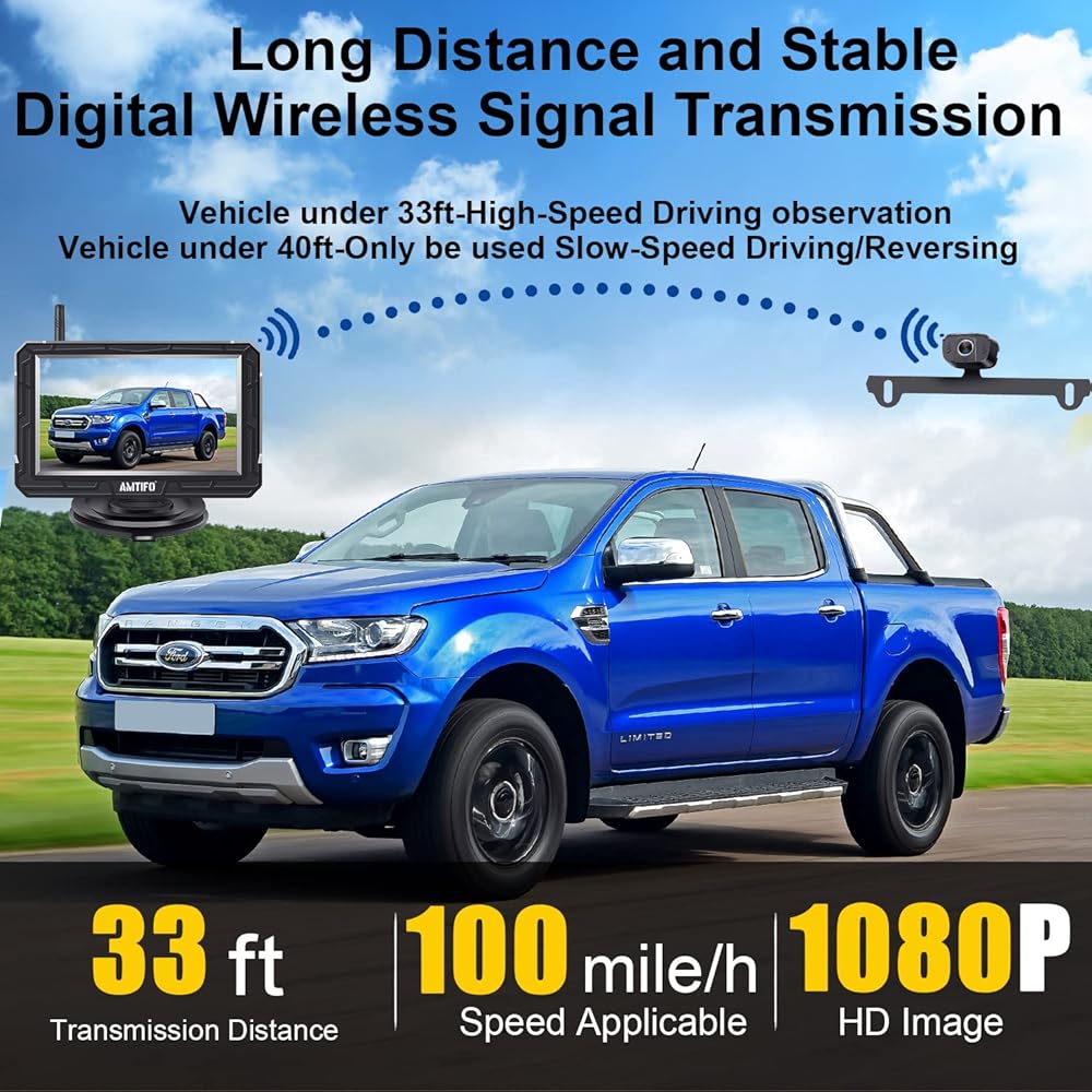 ► Universal backup camera for trucks with digital Signal transmission, delivers a stable image without any interference under 33ft vehicle.