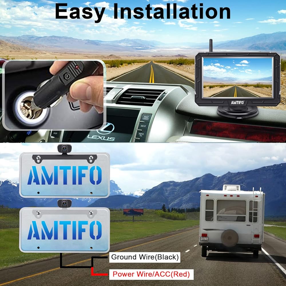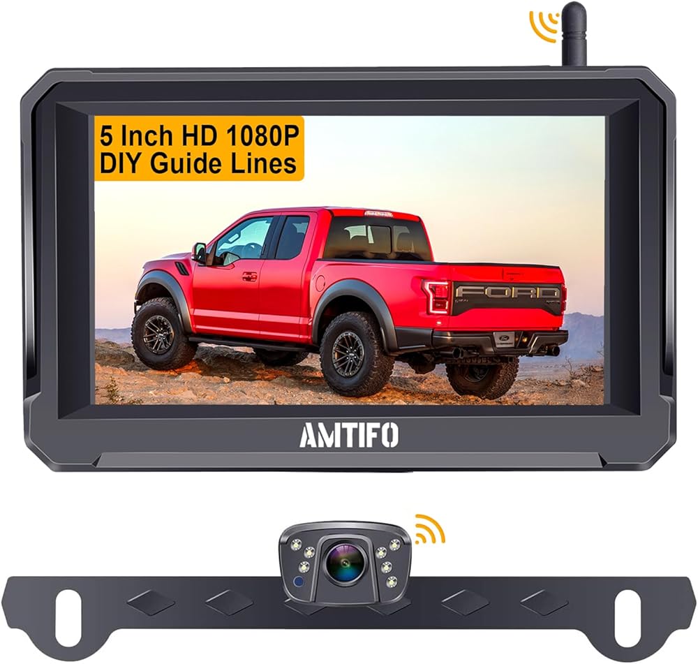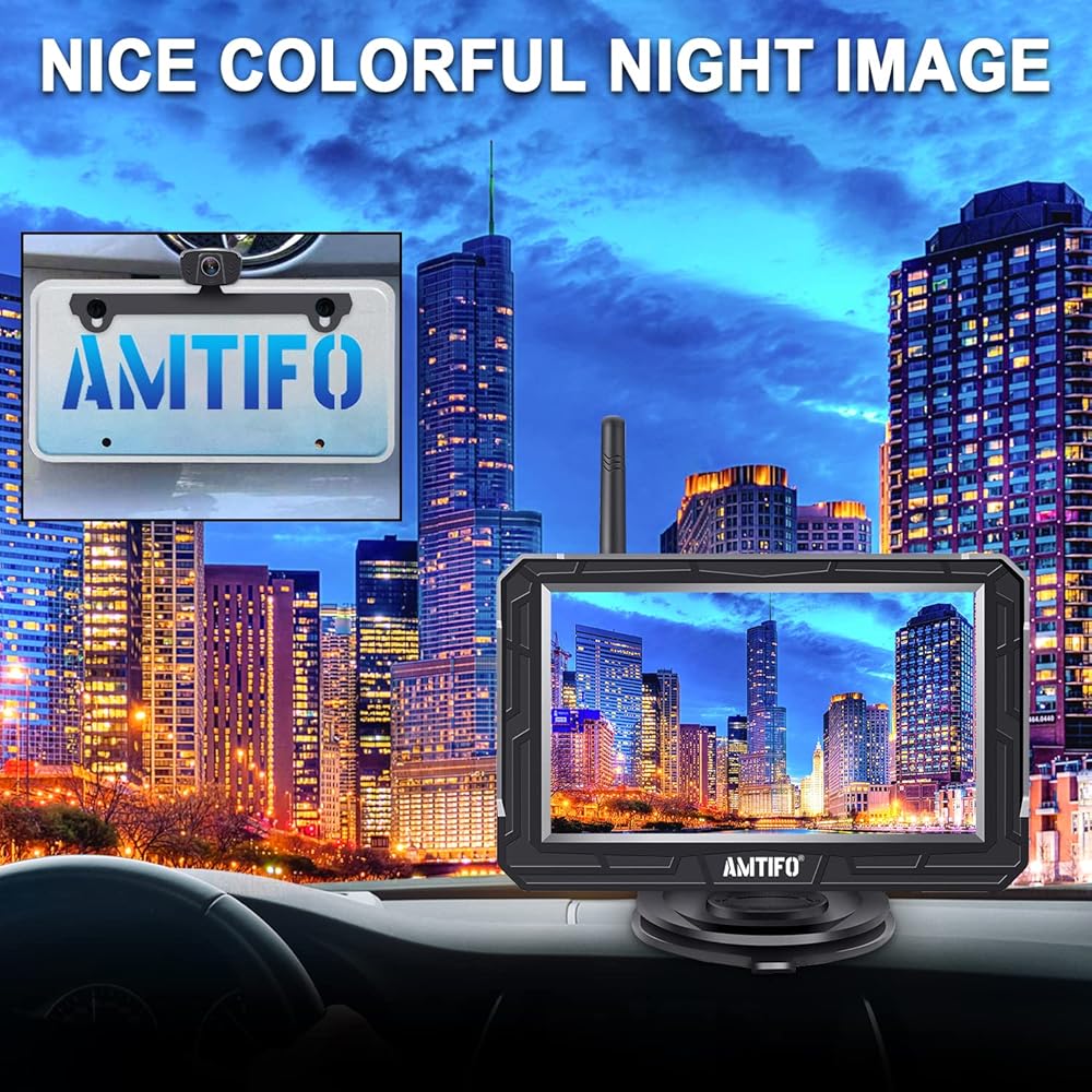 كاميرا احتياطية لاسلكية AMTIFO HD 1080P رؤية خلفية بلوتوث 5 بوصة شاشة مقسمة تعمل باللمس مفتاح مراقبة سيارة شاحنة تخييم لوحة ترخيص نظام كاميرا 2 قنوات رؤية ليلية واضحة مقاومة للماء (4.3 بوصة)