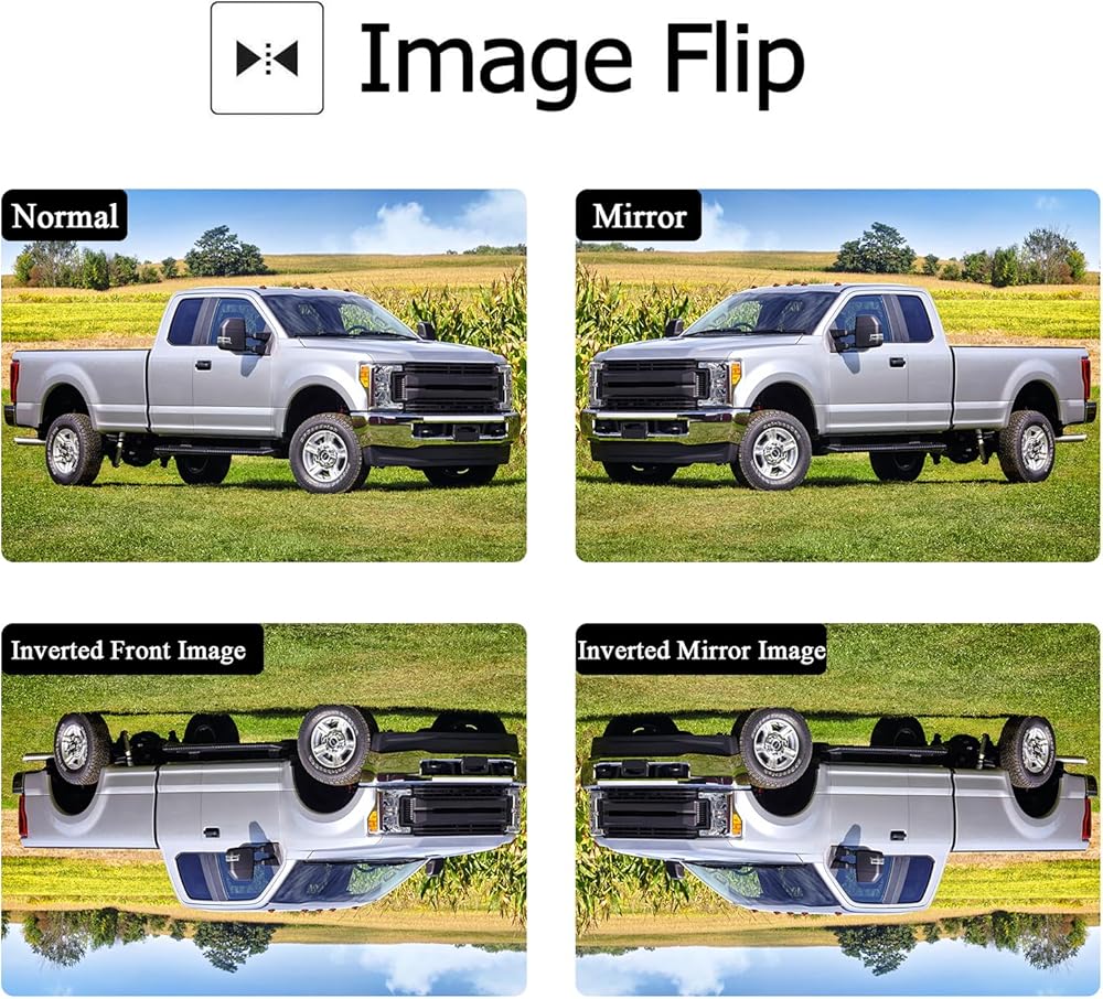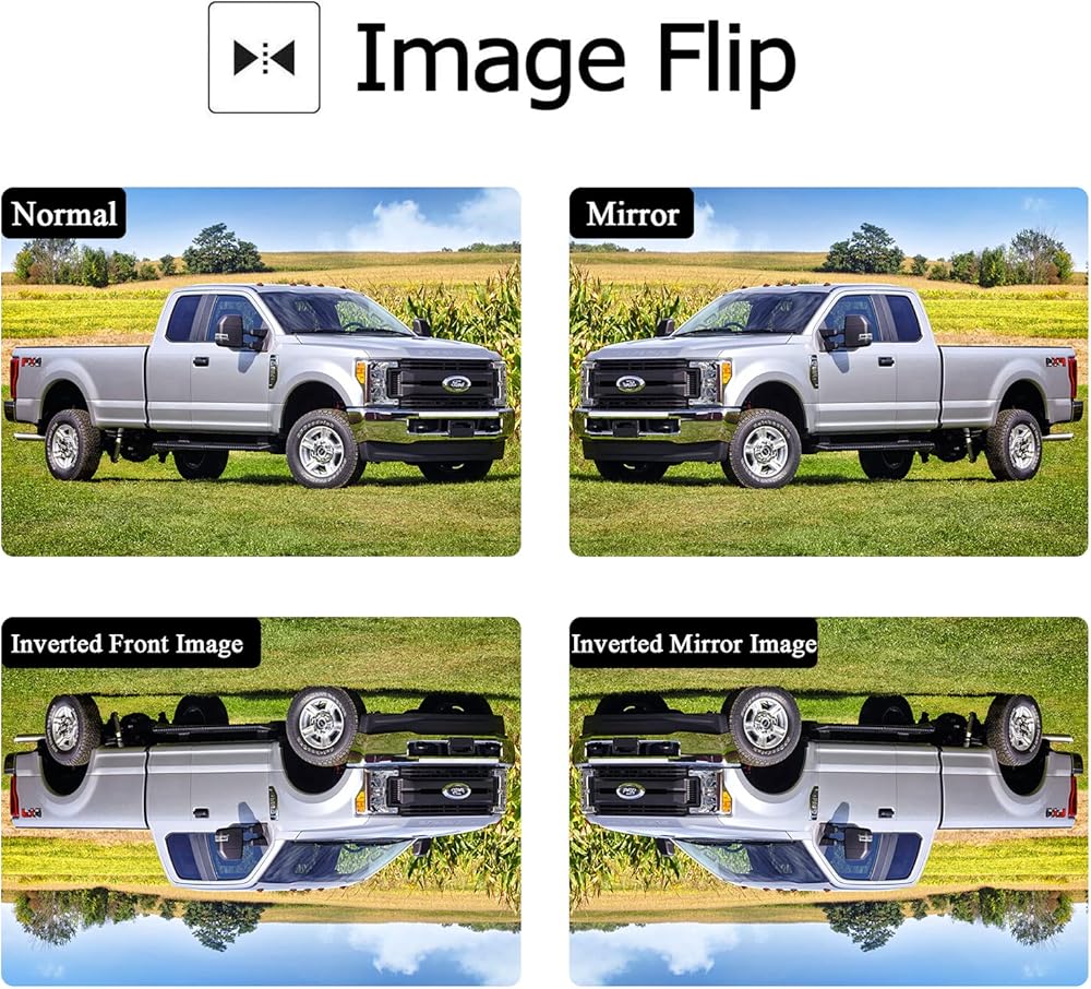 ► Jeep wrangler backup camera comes with functions including on/off guide lines, flip images mirrored/facing/horizontal flip/vertical flip.