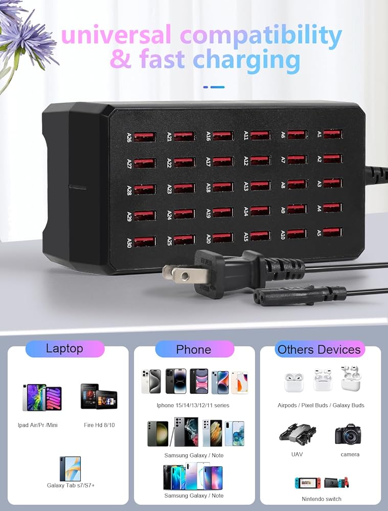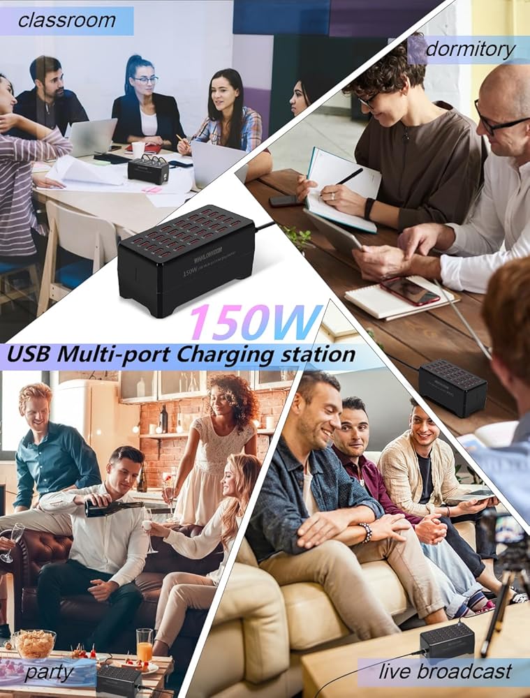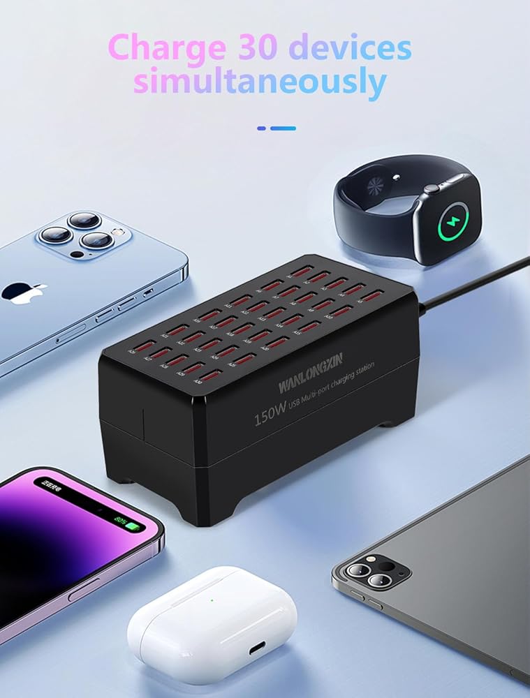 محطة شحن، محطة شحن USB بقدرة 150 وات و30 منفذًا، محطة شحن USB متعددة، محطة شحن لأجهزة متعددة، محطة شحن USB متعددة، شواحن لأجهزة متعددة