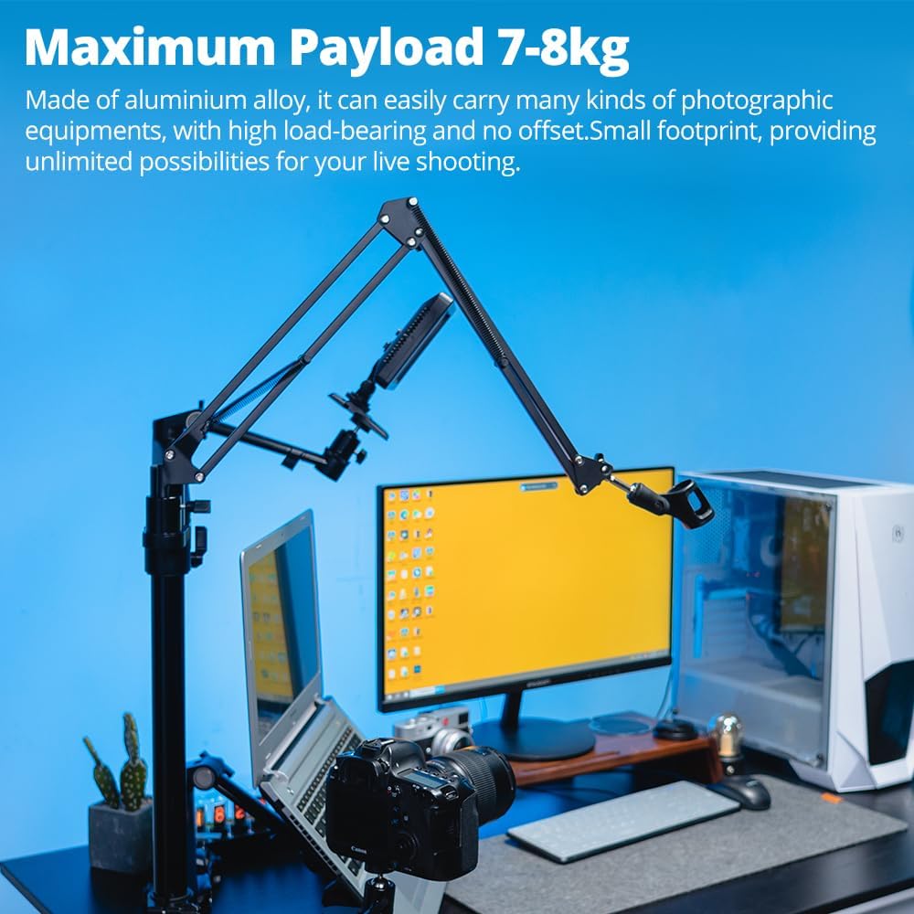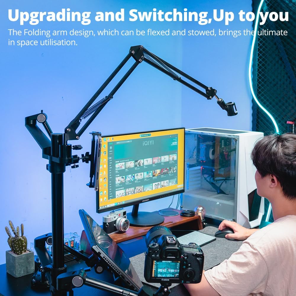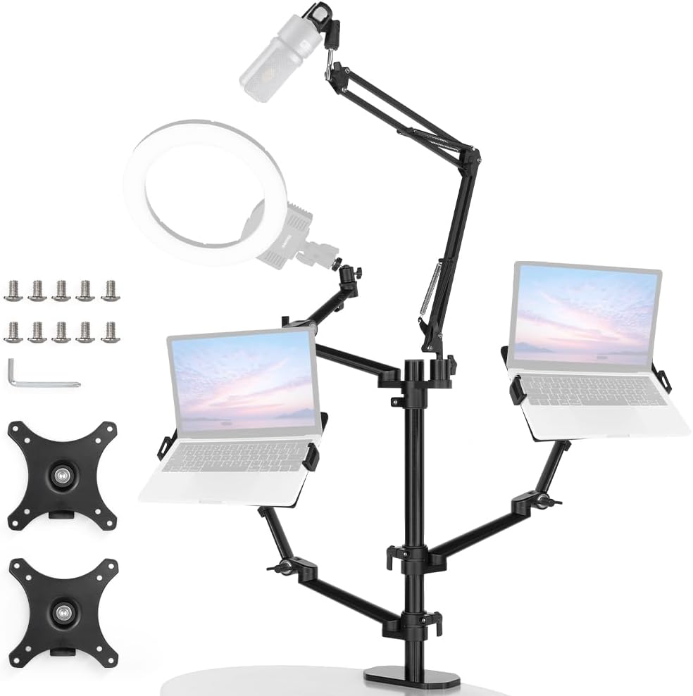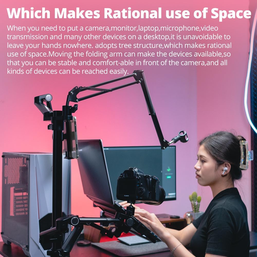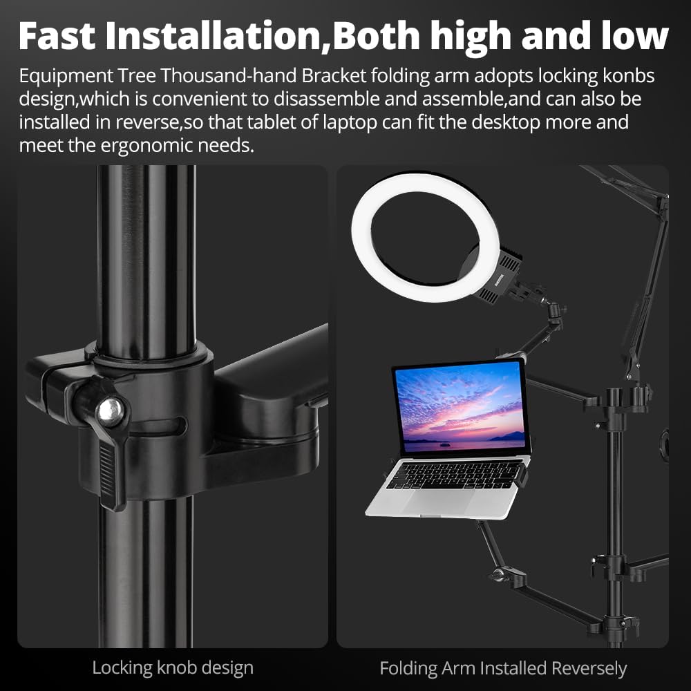 • 【مكتب صحي】اضبط الشاشة والكمبيوتر المحمول على الوضع الأكثر راحة، مما يساعد على تقليل الضغط على رقبتك وكتفك، وتنظيم مساحة العمل الخاصة بك وتحسين كفاءة عملك.