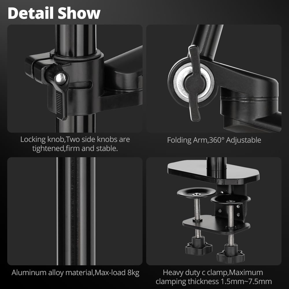 • 【ذراع ثابت】مصنوع من الألومنيوم عالي التحمل والممتاز لضمان القوة والثبات، إذا وجدت أن شاشتك ثقيلة قليلاً، فإن تعديل التوتر على الحافة، ولا توجد مشاكل في الأسفل.