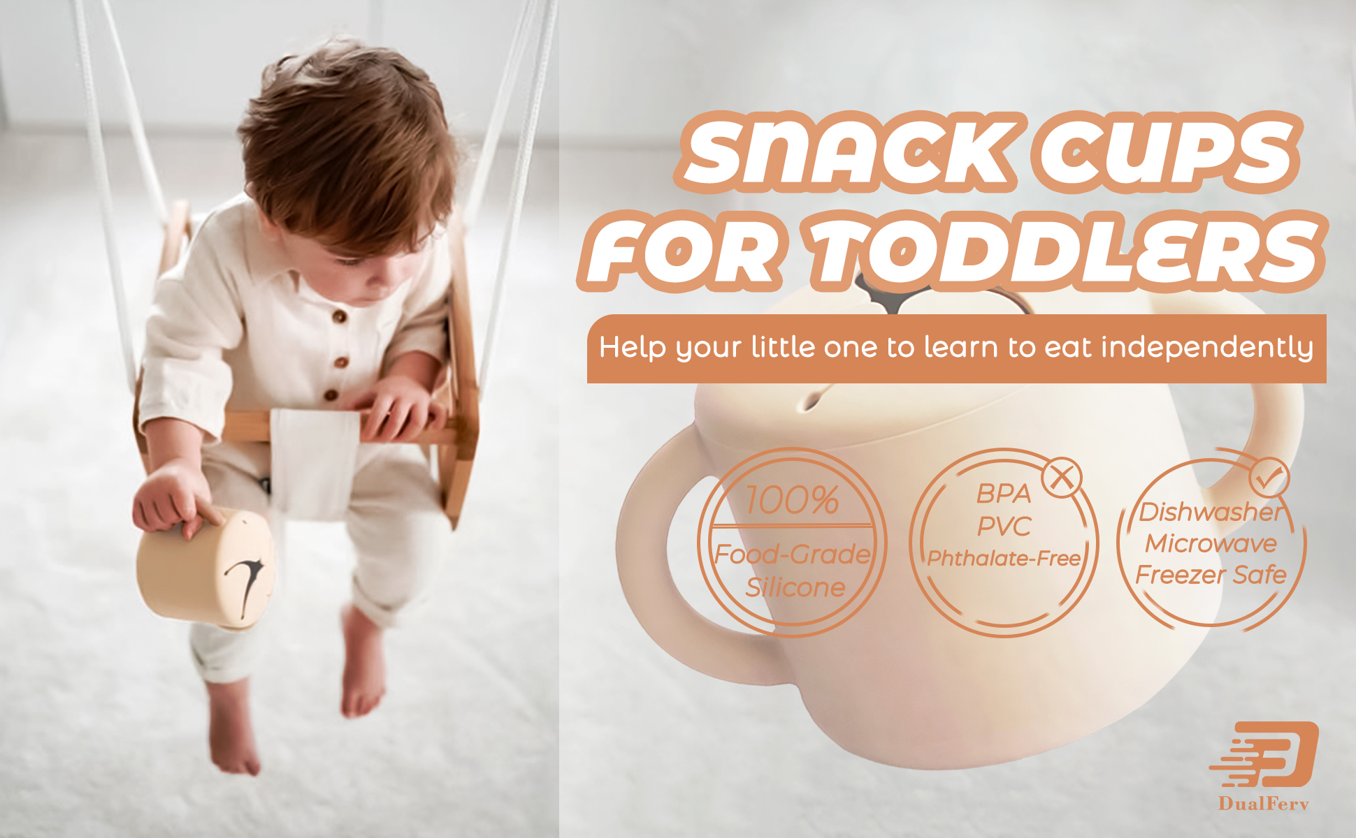 أكواب الوجبات الخفيفة من DF DUALFERV للأطفال الصغار، حاويات الوجبات الخفيفة للأطفال، حاويات الوجبات الخفيفة للأطفال الصغار، التقاط الوجبات الخفيفة، أكواب الوجبات الخفيفة للأطفال (بيج)