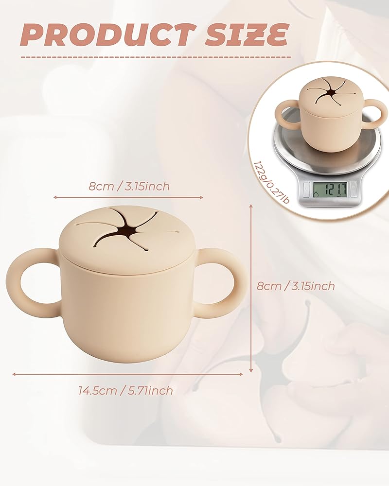 - المادة: كوب الوجبات الخفيفة الخاص بنا للأطفال مصنوع من السيليكون الصالح للطعام، وخالي تمامًا من البيسفينول والفثالات والرصاص وغير سام.