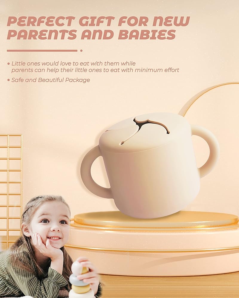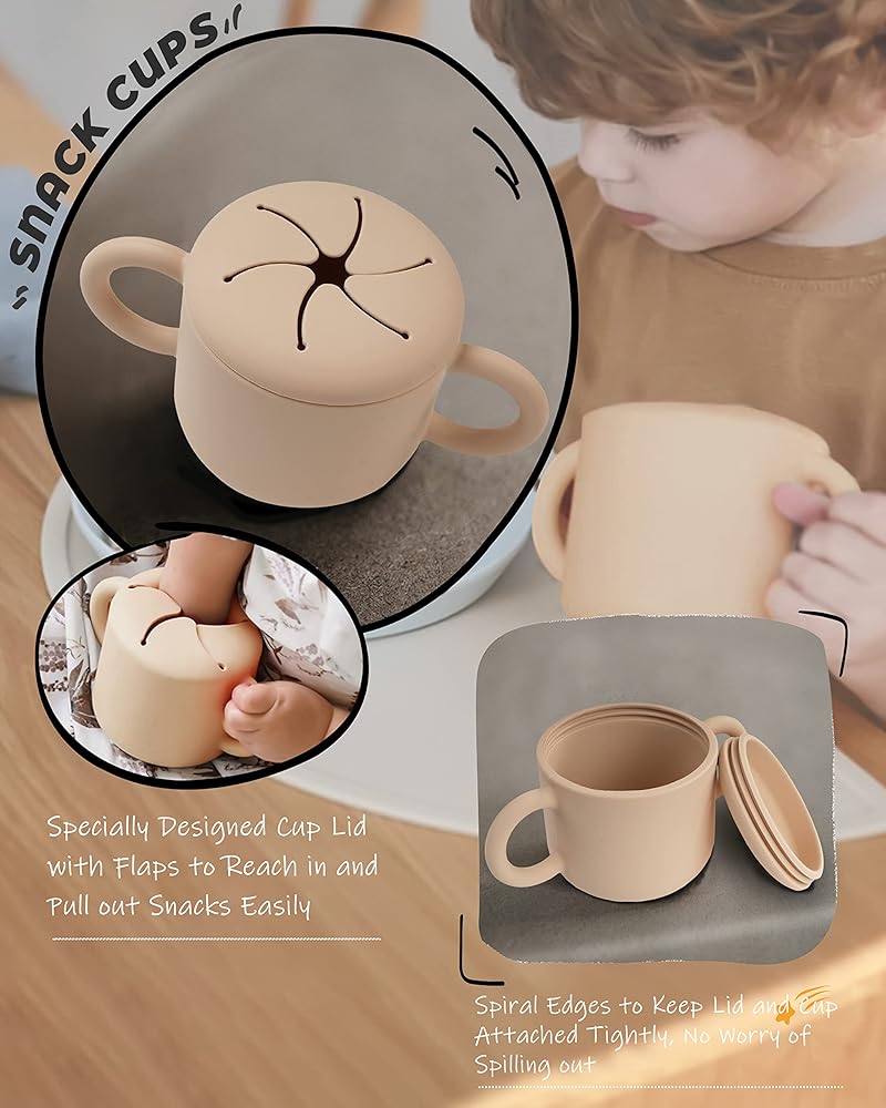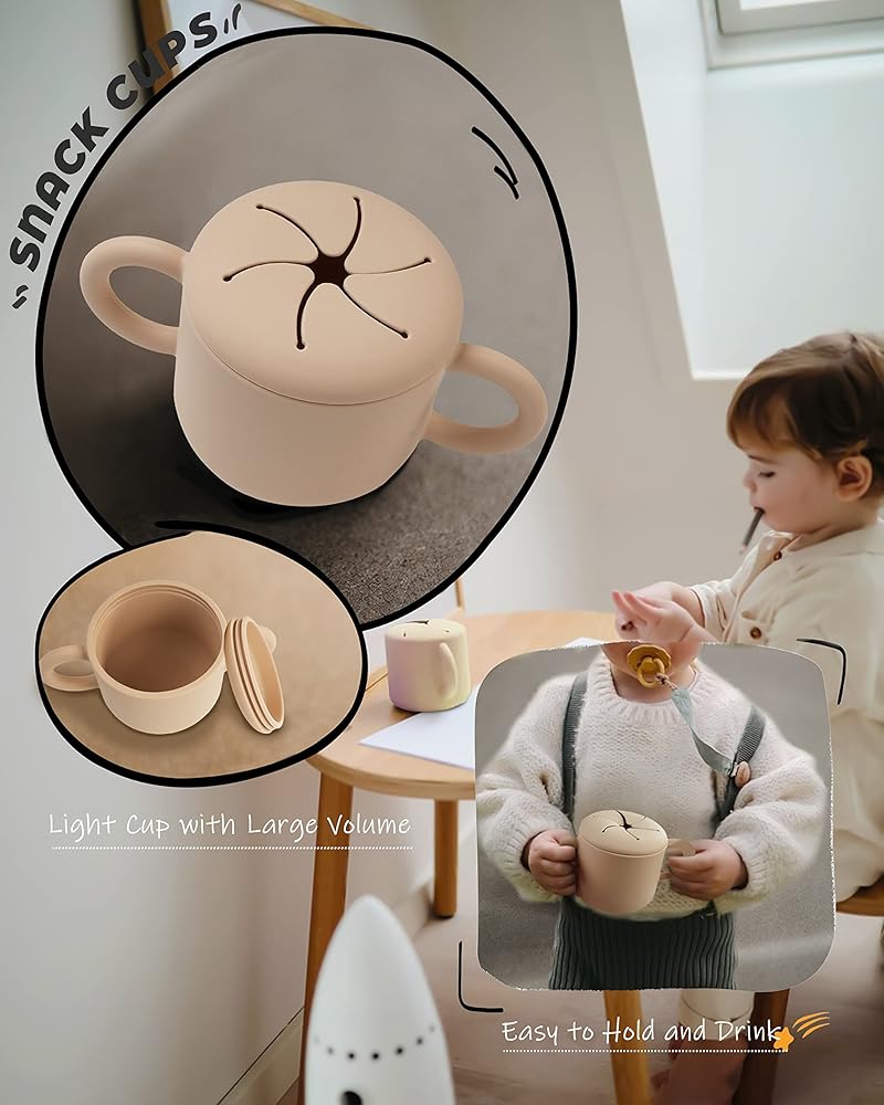 - غطاء الكوب: غطاء كوب مصمم خصيصًا لأوعية الوجبات الخفيفة للأطفال الصغار مع أغطية للوصول إلى الوجبات الخفيفة وسحبها بسهولة