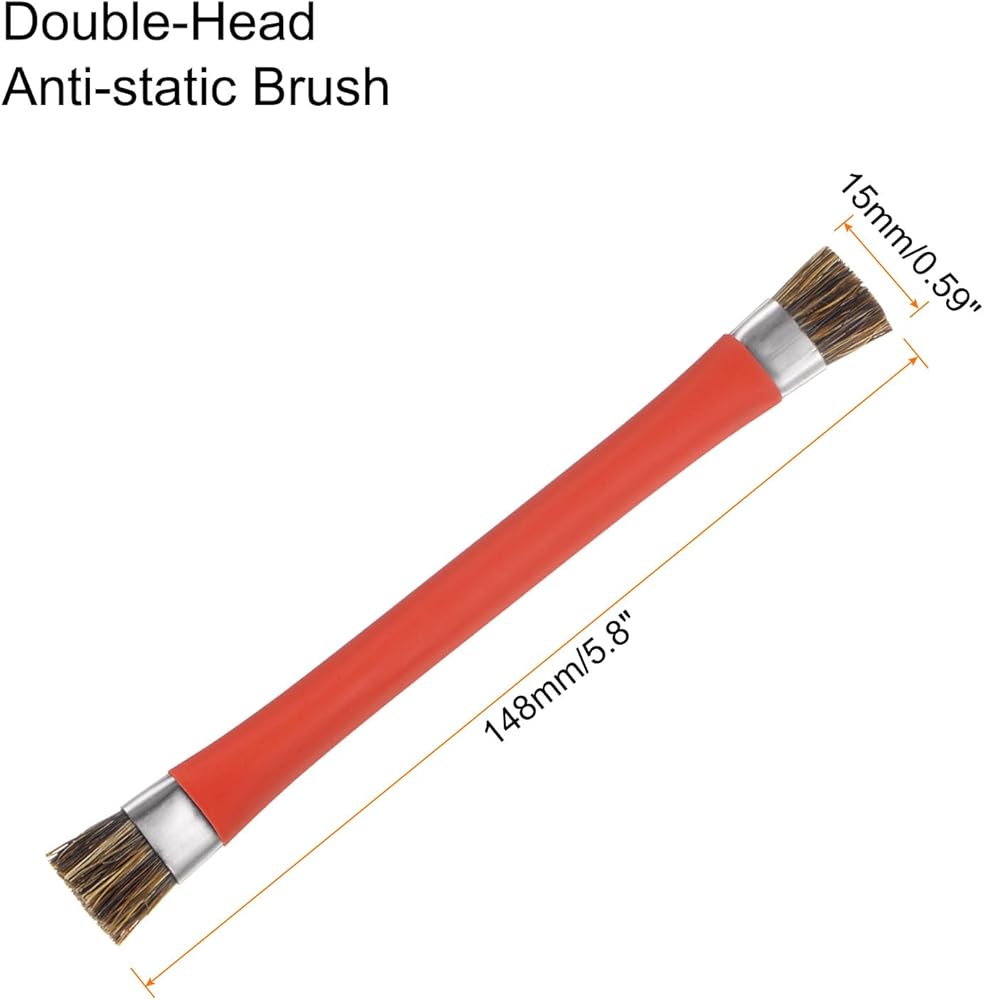 فرشاة تنظيف HARFINGTON مزدوجة الرأس للهاتف الأم IC بشعيرات 12 × 15 مم، منظف فرشاة ESD مضاد للكهرباء الساكنة لهاتف الكمبيوتر، طول 148 مم، أحمر