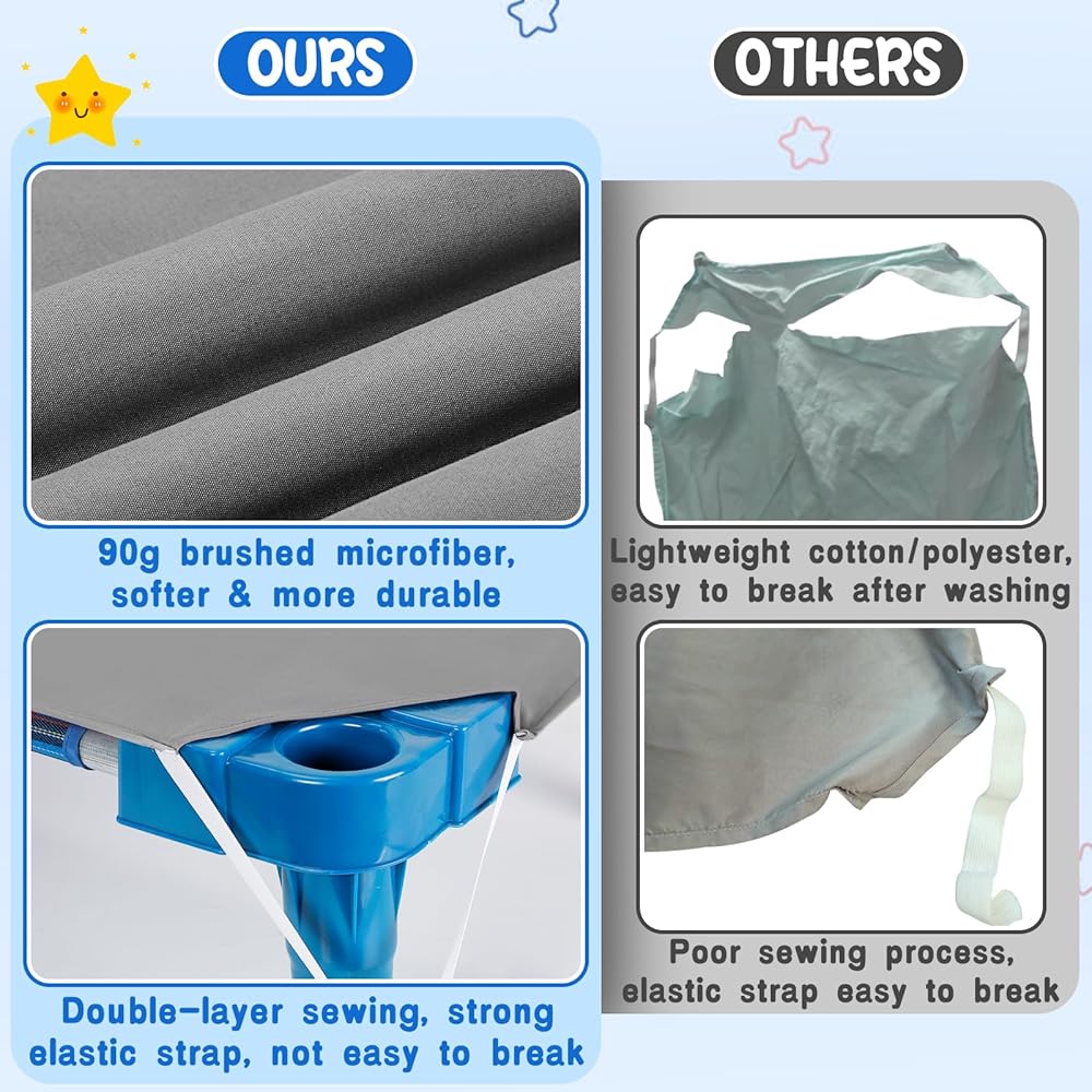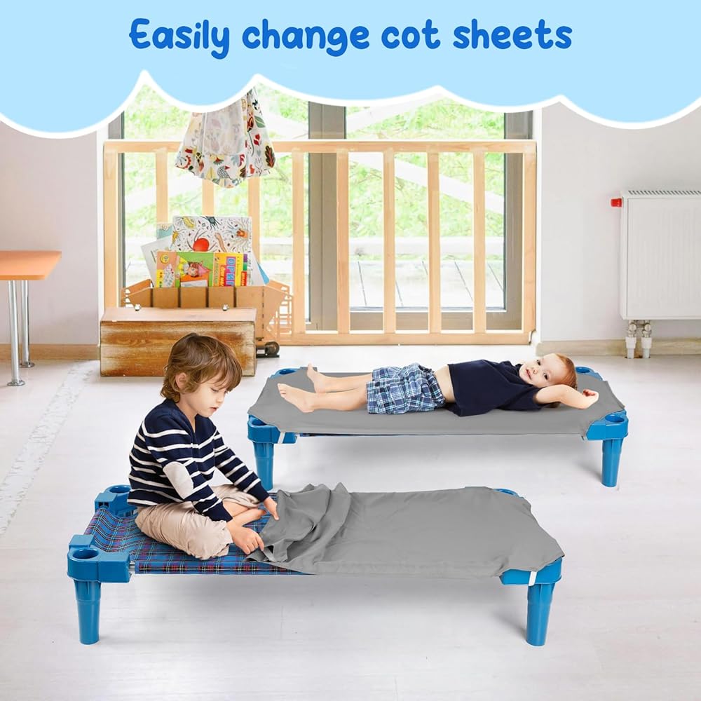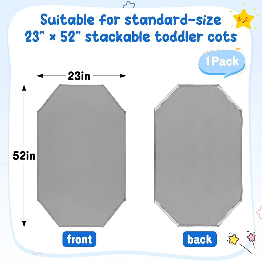 • 🎈Standard Size: Our daycare/preschool cots sheet is 23 × 52 inches, suitable for standard-size stackable toddler beds, daycare beds, preschool beds, compatible with ECR4Kids stackable kiddie cots, and more.