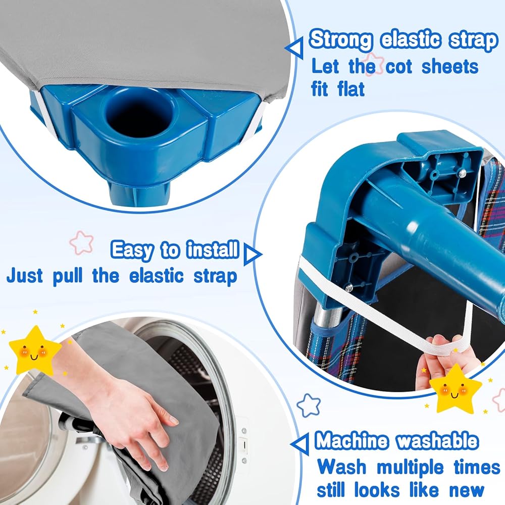• 🎈Durable Elastic Straps: The four corners of this toddler cot sheets are designed with widened sturdy elastic straps, which can firmly fix the toddler nap cot sheets in place and ensure that they will not move. Tightly sewn, more durable, and will not loosen or break easily.