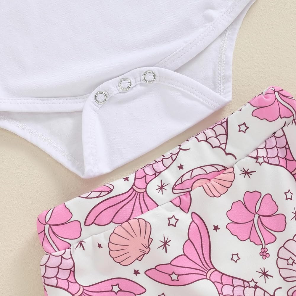 التصميم: زي فتاة عيد الميلاد الأول، زي فتاة عيد الميلاد الأول بوهو، زي فتاة عيد الميلاد الأول، طباعة حروف لعيد الميلاد، رومبر مكشكش قصير الأكمام، يتطابق مع شورت مطبوع على شكل صدفة وعصابة رأس، هذا الزي مثالي لطفلتك الرضيعة، سوف طفلتك الرضيعة أحبها.