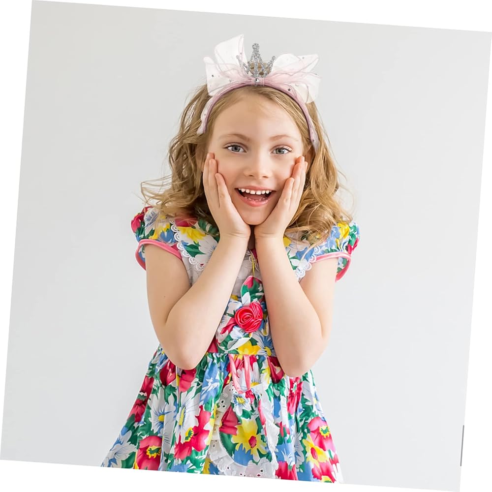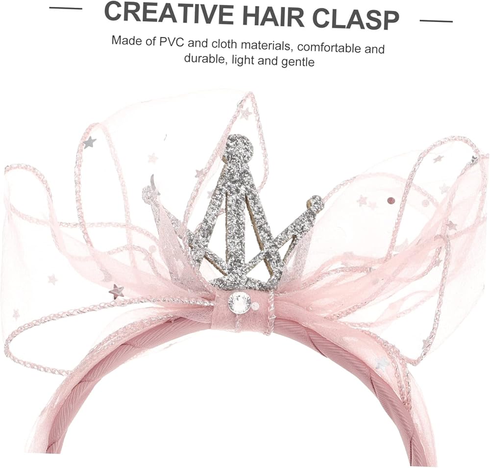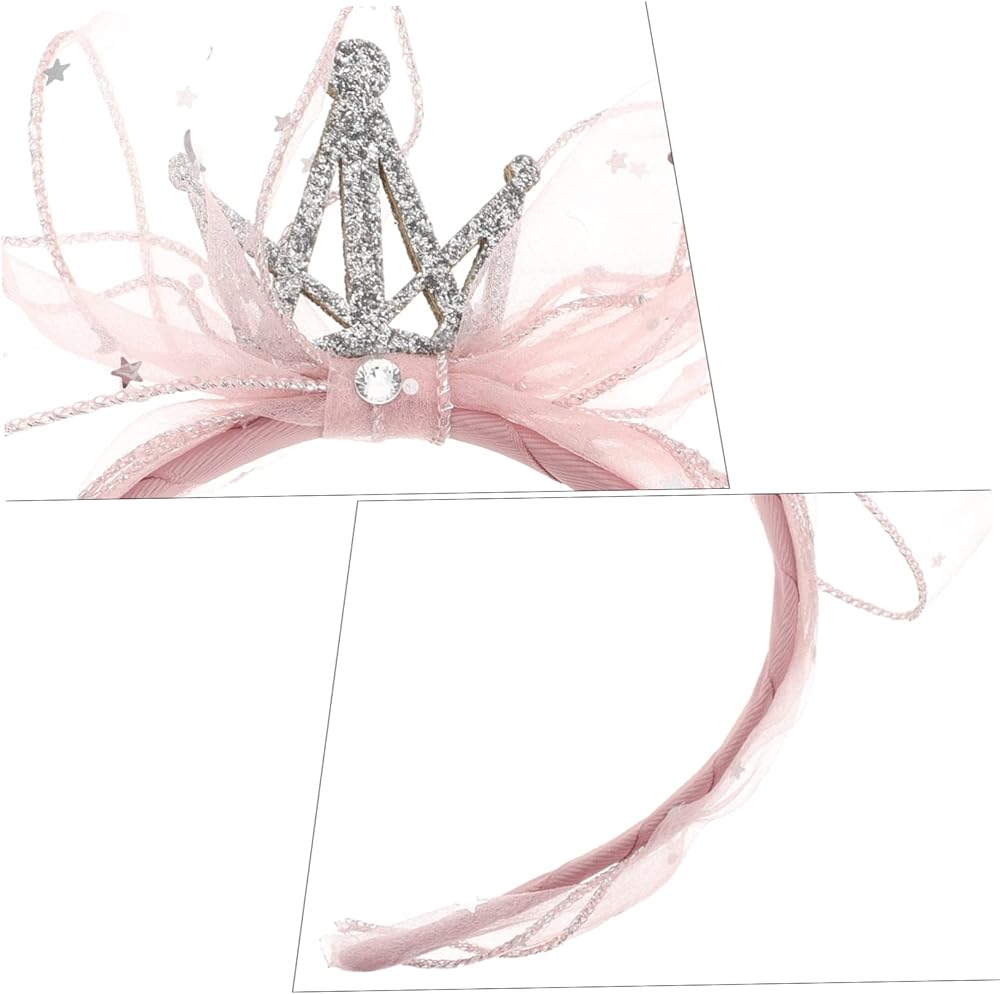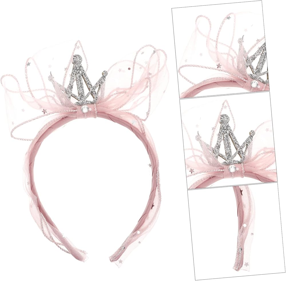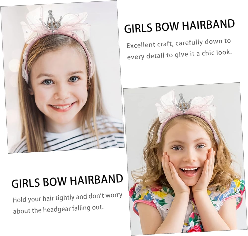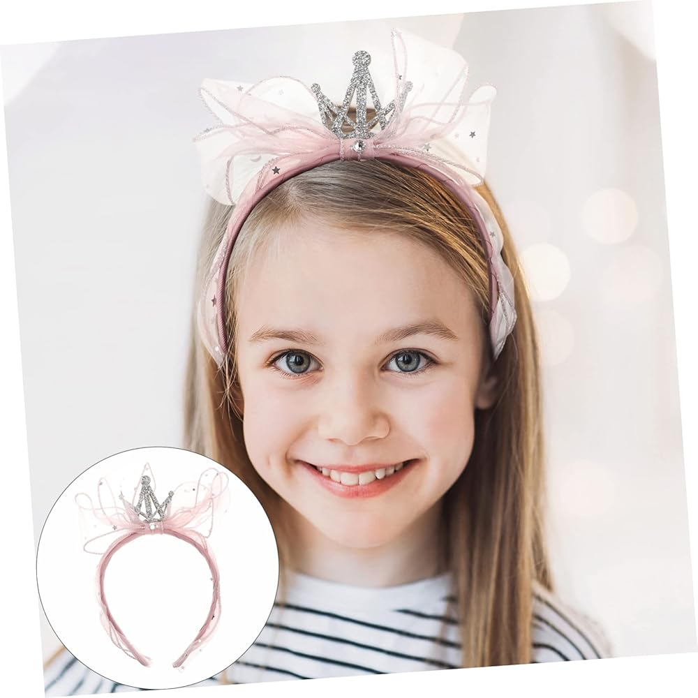 إكسسوارات شعر للفتيات الصغيرات - عصابة رأس جميلة على شكل فيونكة من الغزل الوردي: تيجان كريستال متلألئة، ستتألق الكريستالات المرصعة تحت انكسار ضوء الشمس، والتصميم بأكمله له نمط جميل. .
