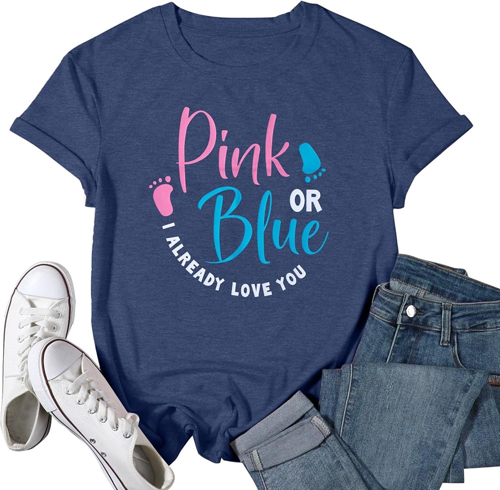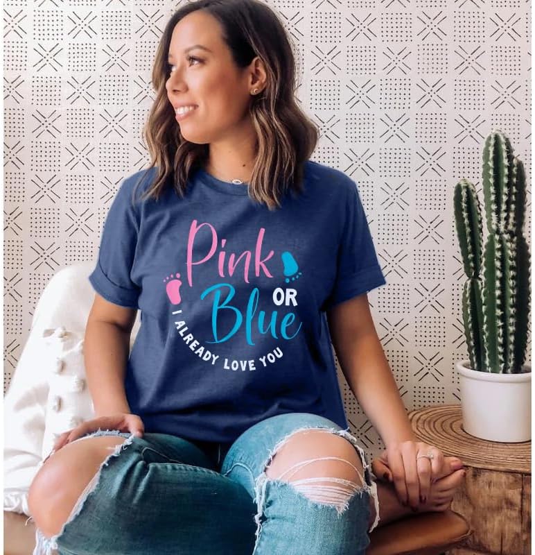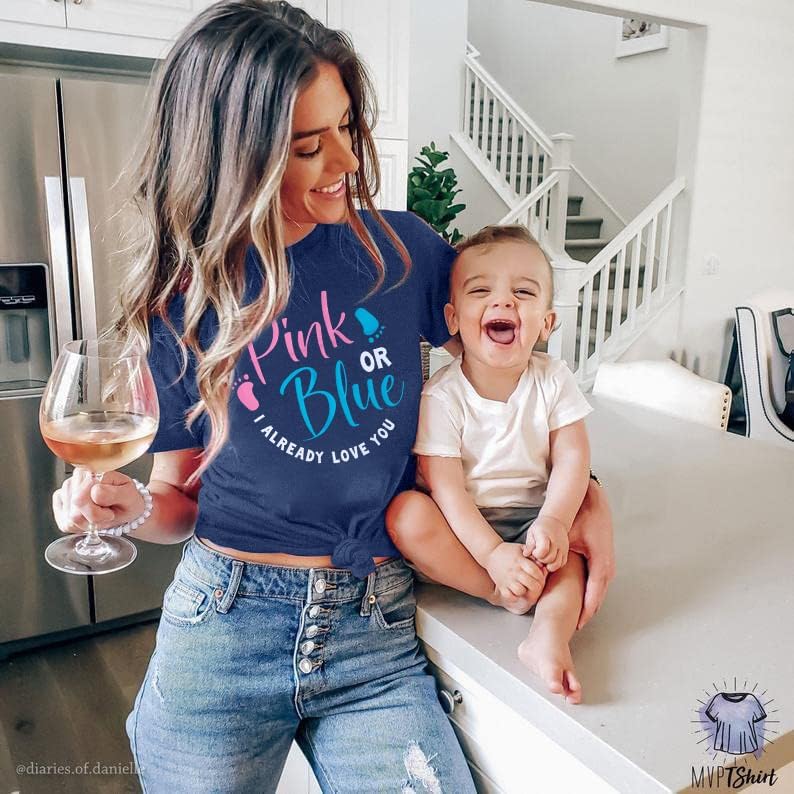 المزايا: قمصان باللون الوردي أو الأزرق مطبوع عليها أنا بالفعل أحبك، قمصان مضحكة أو للجنسين، قمصان حفلات للأولاد أو البنات تكشف عن نوع الجنس، قميص قصير الأكمام برقبة دائرية كاجوال للإعلان عن الحمل، قميص هدية لصديق حامل، عائلة الأمومة.