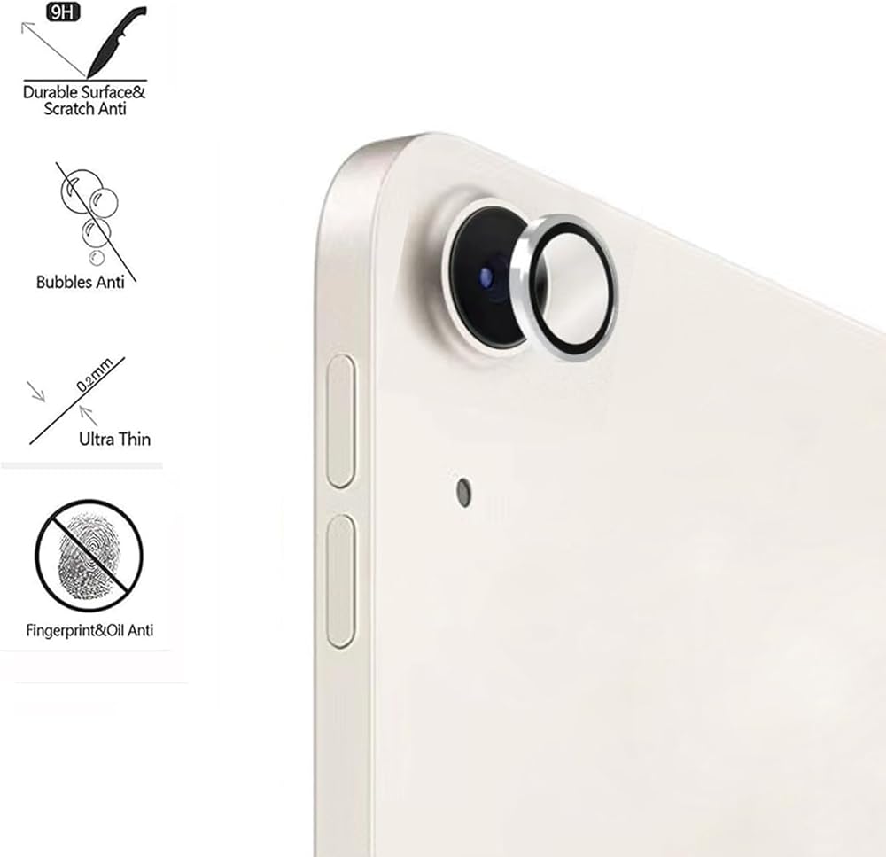 - 3. يتم تغطية واقي عدسة كاميرا iPad بطبقة مقاومة للزيوت لتقليل البقع وبصمات الأصابع على جهاز Apple iPad Air 11 بوصة و13 بوصة