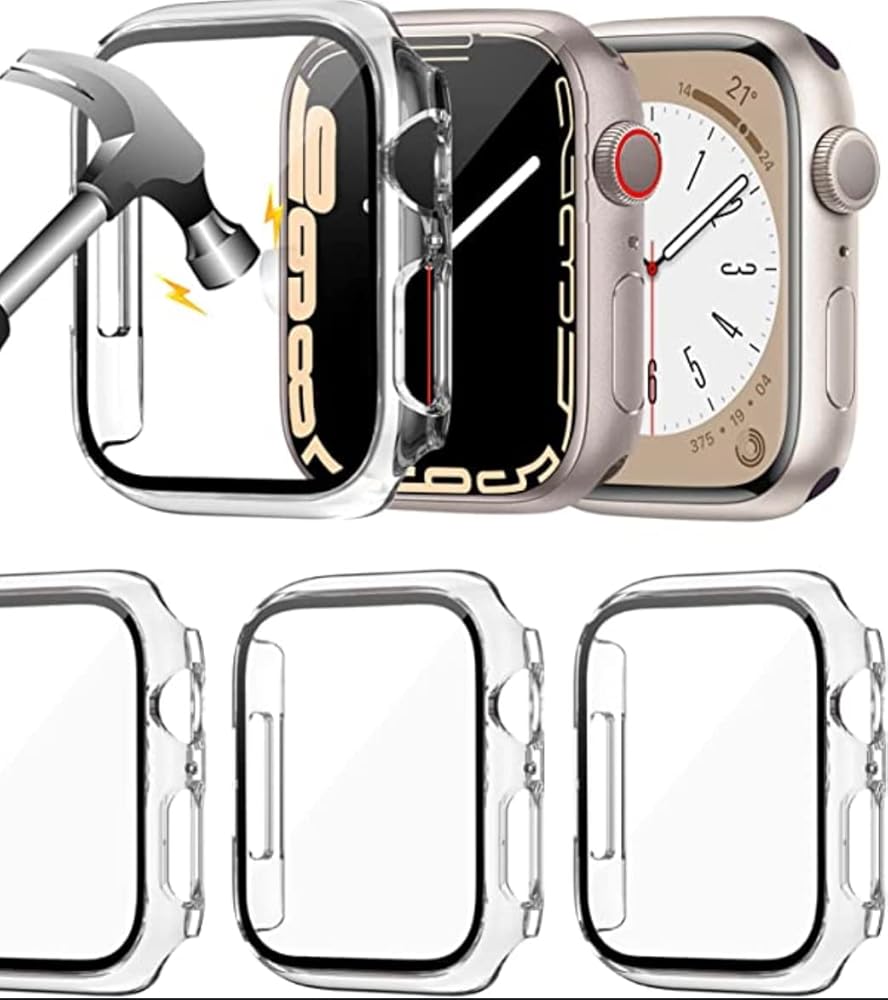 Tempered Glass+case For 41 MM Apple Watch Screen Protector + cover bumper apple watch Accessories COMPATIBLE: Compatible for Apple Watch Series 7, 8.MATERIAL: Durable PC & PET material cover the screen and edges. Full cover protect your Watch, prevents scratches and wear. DESIGN: Smart design allows access to all controls, buttons, sensors and Apple watch features. Charge directly, don't need to take off the watch case. SCREEN PROTECTOR: The PET material screen protector can be repeatedly wiped with a glasses cloth, to ensure the clarity of the screen without affecting repeated use. (TIPS): This cases is not waterproof, it doesn¡t support while swimming. If you forgetto take it off, or using this product at gym or sports activities may cause the moisture to be trapped between this product and the watch screen. You just need to wipe with a glasses cloth.(TIPS): This cases is not waterproof, it doesn¡t support while swimming. If you forgetto take it off, or using this product at gym or sports activities may c