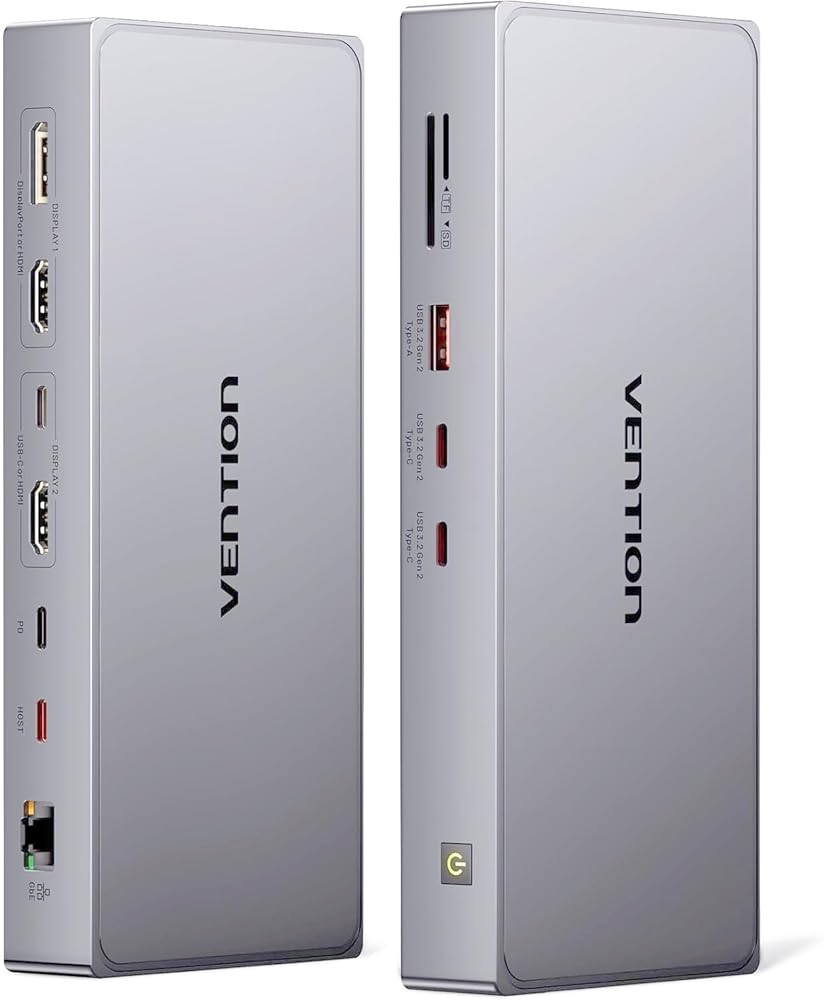 محطة إرساء VENTION 7 في 1 USB C، محول متعدد المنافذ من النوع C مع 4K HDMI 3 USB 3.0 قارئ بطاقات 100W PD SD/TF، متوافق مع الكمبيوتر المحمول MacBook Air iPad Pro XPS Thunderbolt Hub