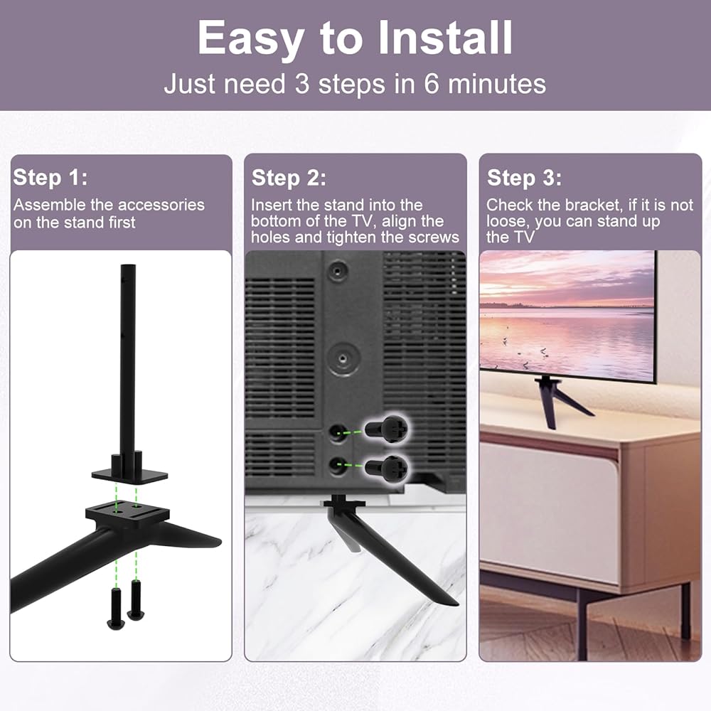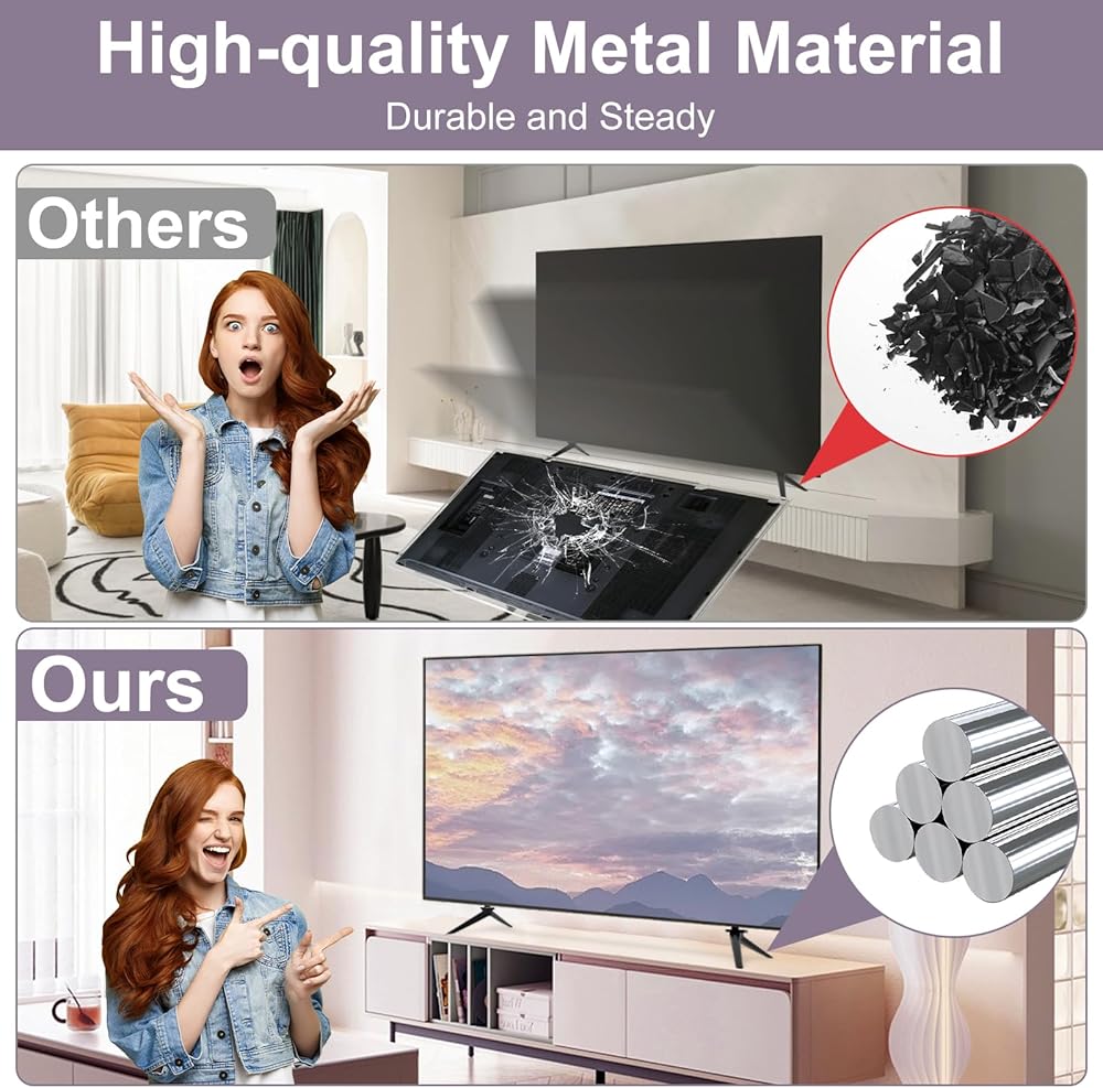 Quality Material: The tv base stand for Panasonic crafted from robust steel, our TV stand ensures durability, providing a stable and secure base for your TV. Say goodbye to flimsy stands, and rest assured that your television is in safe hands.