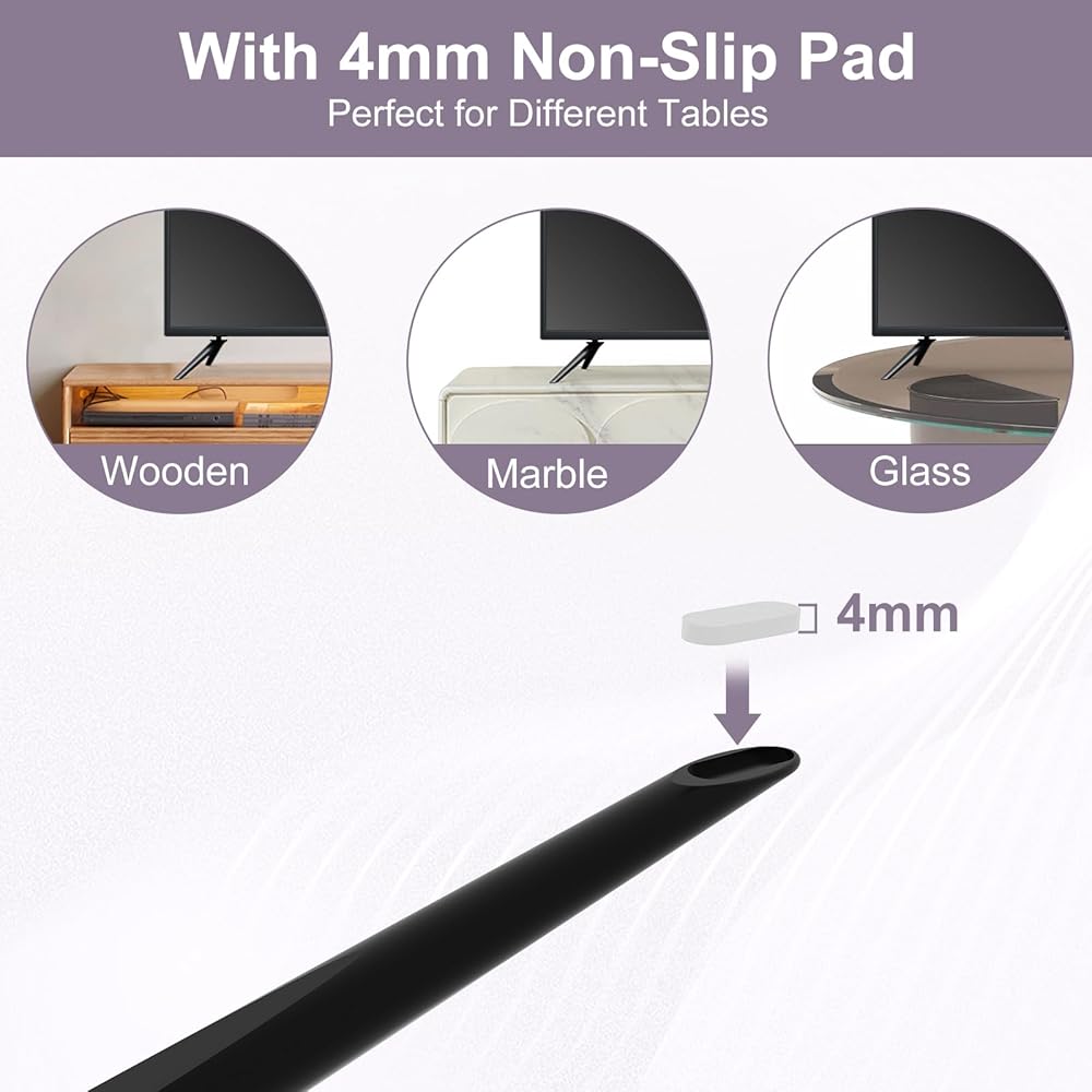 4mm Anti-slip Pad:4mm anti-slip pads designed to effectively prevent the TV replacement stand for Panasonic from sliding on smooth tabletops, allowing the TV to be placed on various types of tabletop materials.