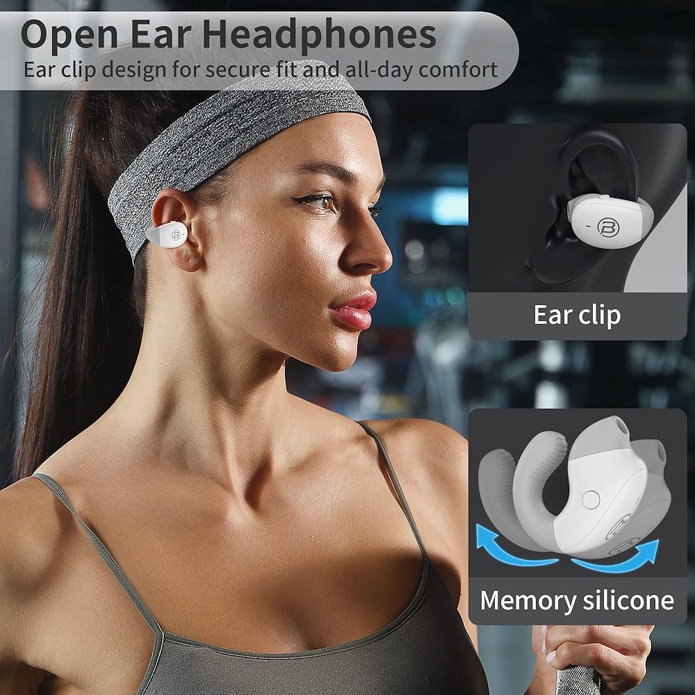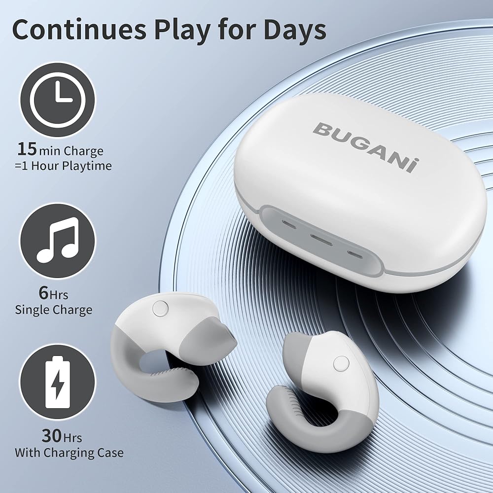 سماعات بلوتوث BUGANI، سماعات أذن لاسلكية مفتوحة بتقنية البلوتوث 5.3، سماعات أذن مفتوحة مع صوت ستيريو، وقت تشغيل 30 ساعة، ميكروفون مدمج للمكالمات الواضحة، سماعات مقاومة للماء للجري الرياضي