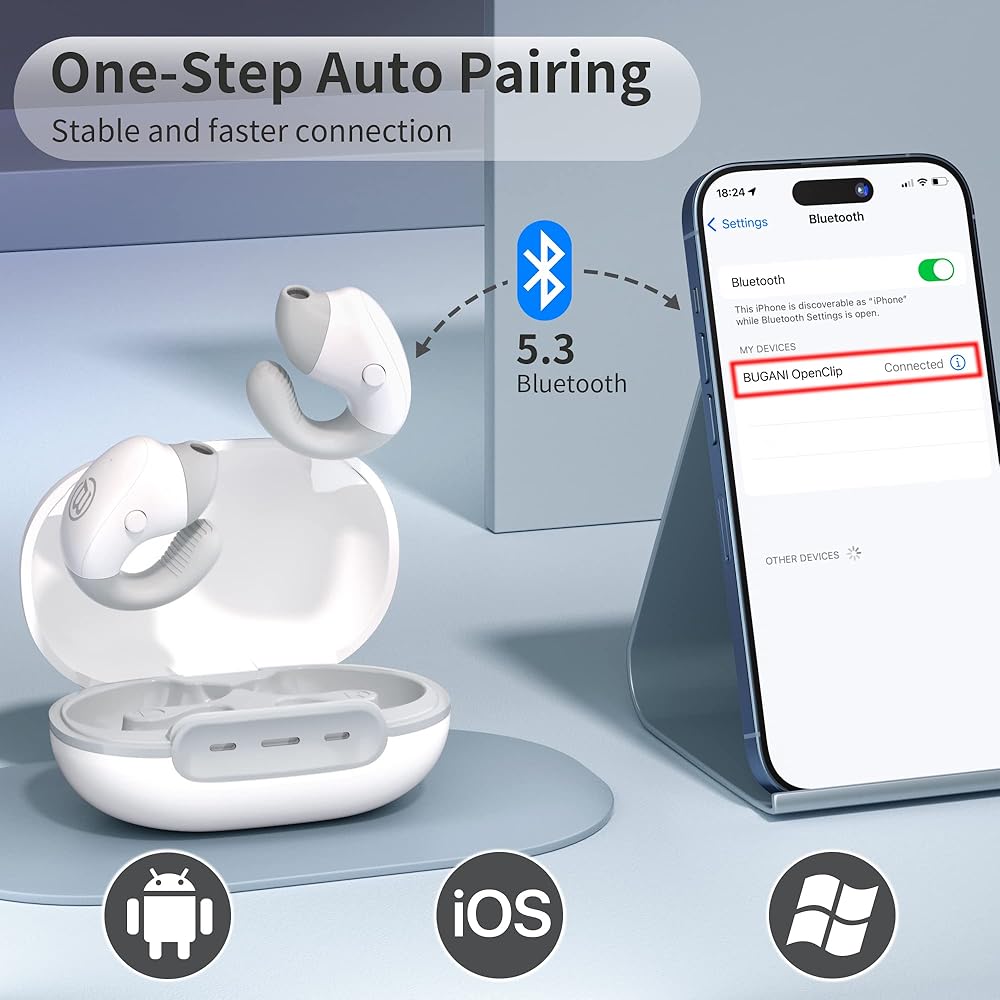 • 【اتصال مستقر وأسرع】 يعتمد أحدث تقنية بلوتوث 5.3 ويتمتع بسرعة نقل مضاعفة، دون فقدان الإشارة أو انقطاع الموسيقى. تتوافق سماعات الرأس اللاسلكية BUGANI ذات الأذن المفتوحة مع أي أجهزة تدعم تقنية Bluetooth، بما في ذلك الهواتف الذكية وأجهزة الكمبيوتر وأجهزة التلفزيون. تتميز بتقنية aptx Low Latency، تسمح لك سماعات الرأس المفتوحة BUGANI بتقليل تأخير البلوتوث - مما يوفر صوتًا عالي الجودة في تزامن مثالي.