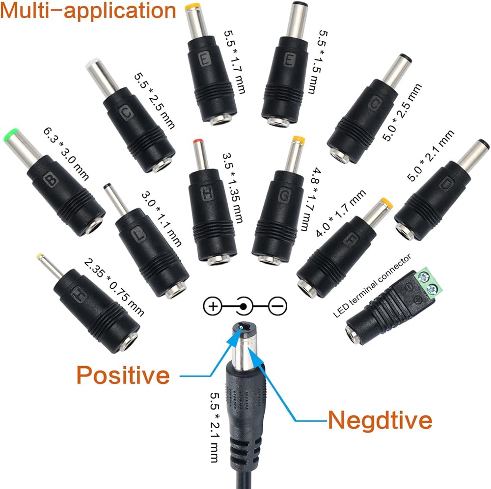 Connector Size: 5.5 x 2.1 x 10 mm (inside"+", outside"-")