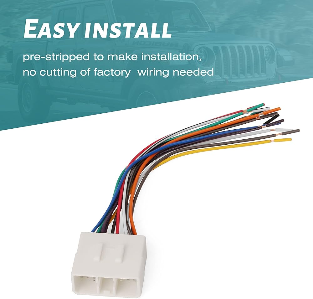 - يتم توصيل مجموعة الأسلاك بمضخم الصوت في المصنع، ويتم توصيلها بموقع الراديو أو مكبر الصوت لما بعد البيع