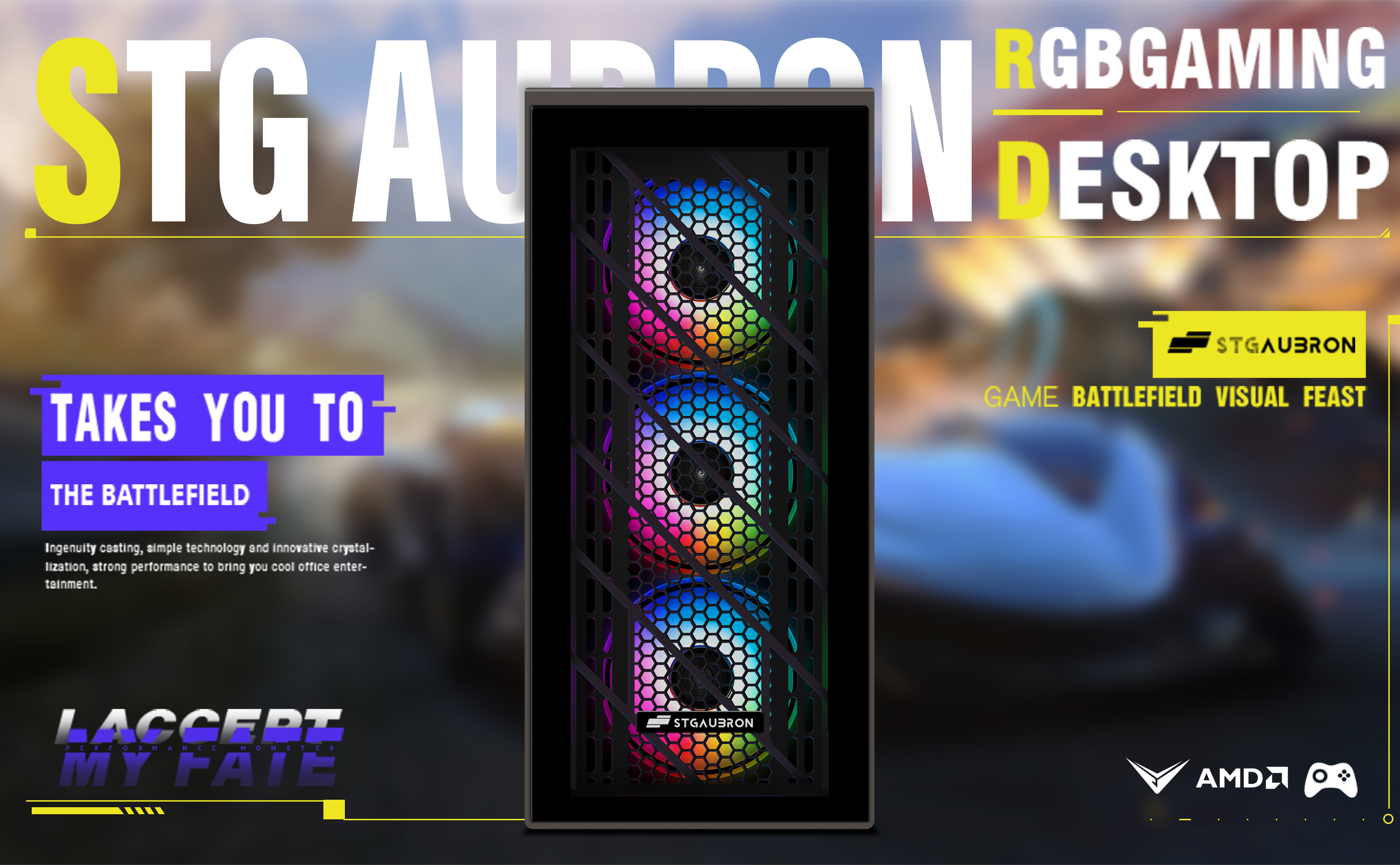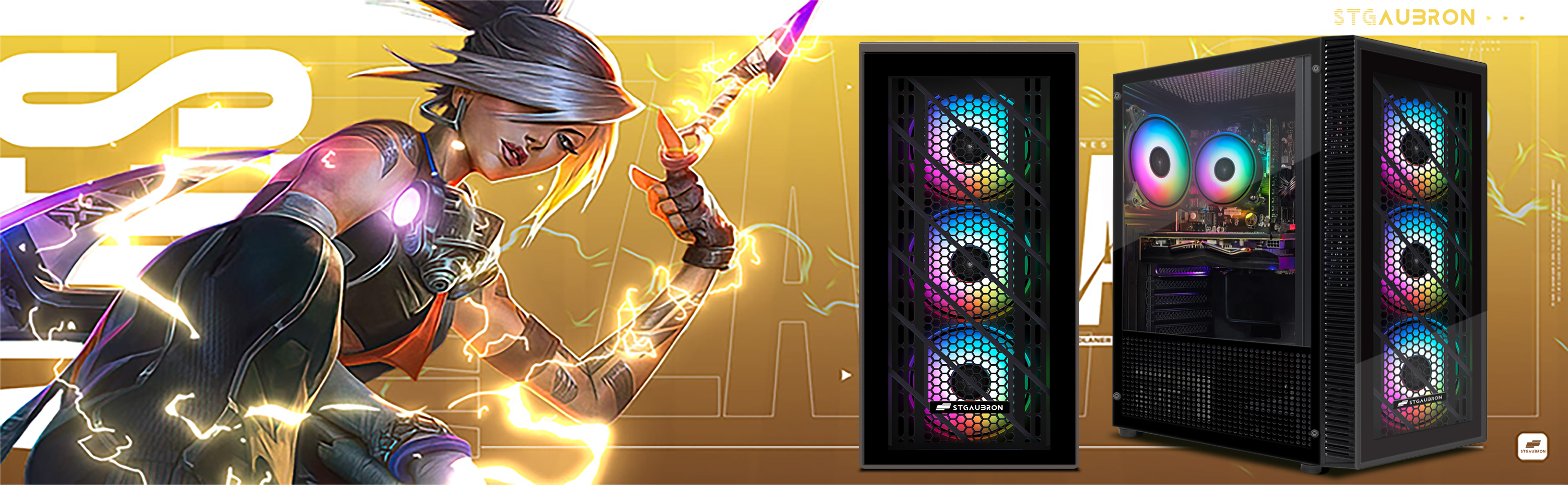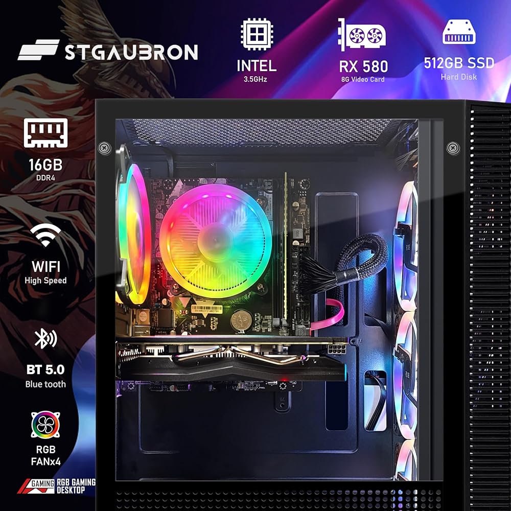 كمبيوتر سطح المكتب للألعاب STGAubron، Radeon RX 580 8G GDDR5، Intel 10th Gen G5905 3.5G، 16G RAM، 512G SSD، WiFi، BT 5.0، RGB Fan x 4، لوحة مفاتيح وماوس ولوحة ماوس RGB، W11H64
