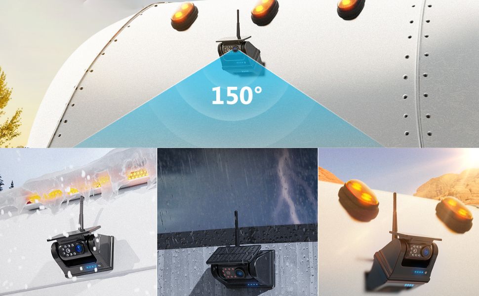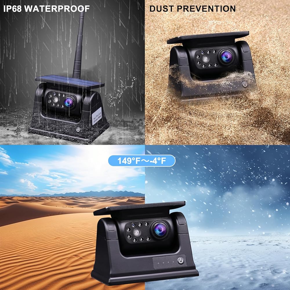كاميرا احتياطية لاسلكية مقاومة للماء IP68: الكاميرا الاحتياطية ذات تصنيف IP عالي جدًا لمقاومة الماء يبلغ 68، مما يجعل من الممكن العمل بشكل ممتاز في الأيام الممطرة. أعلى وأدنى مقاومة لدرجة الحرارة هي -4 درجة فهرنهايت ~ 158 درجة فهرنهايت. تحسين السلامة لقيادتك في الطقس الحار والممطر والثلجي.