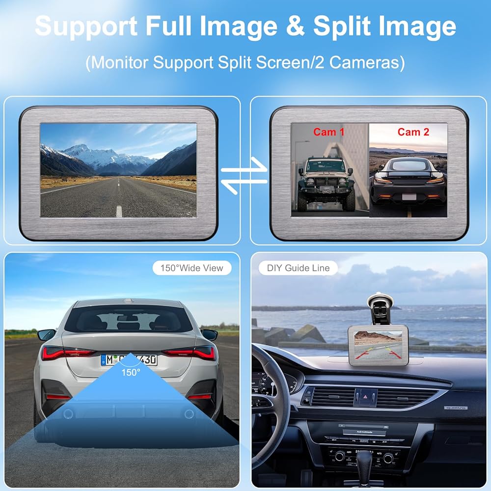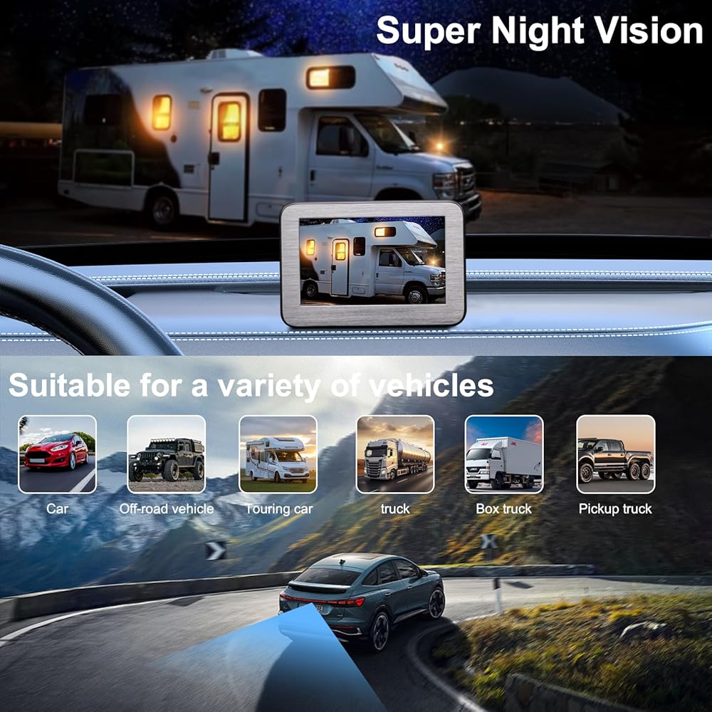 دعم قناتين للفيديو: يمكن لنظام الكاميرا الاحتياطية rv إضافة كاميرا رؤية خلفية ثانية rv في الجزء الأمامي/الخلفي/الجانب من السيارة، ويدعم العرض المتزامن لصورتين أو شاشة منفصلة، مما يقلل من البقع العمياء أثناء القيادة ويجعل السفر أكثر أمانًا.