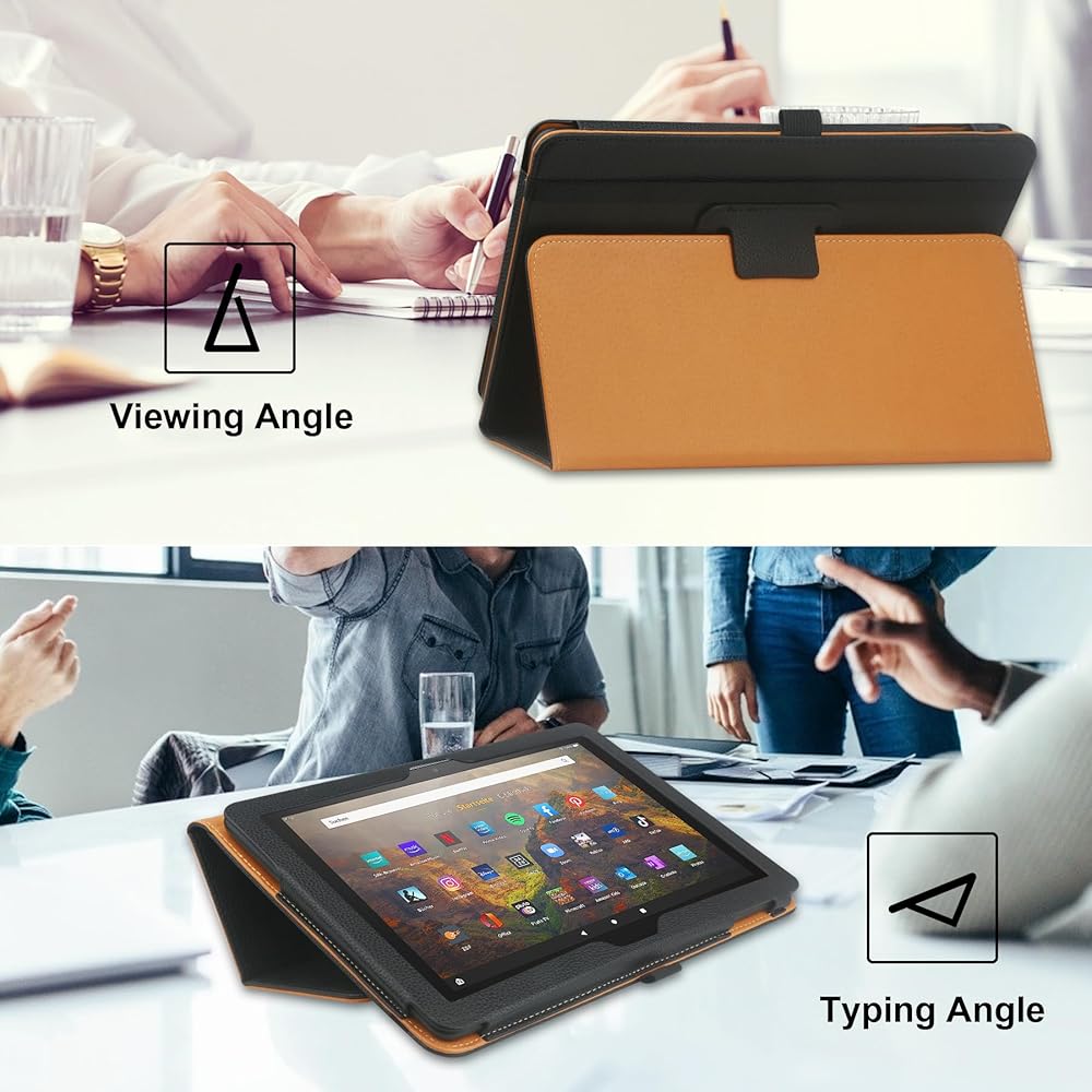 Keep your Fire HD 10 2023/2021 13th/11th Gen Tablet under protection with this folio case all the time;, soft PU leather surface and cloth-fiber interior will avoid tablet from scratched, damaged.