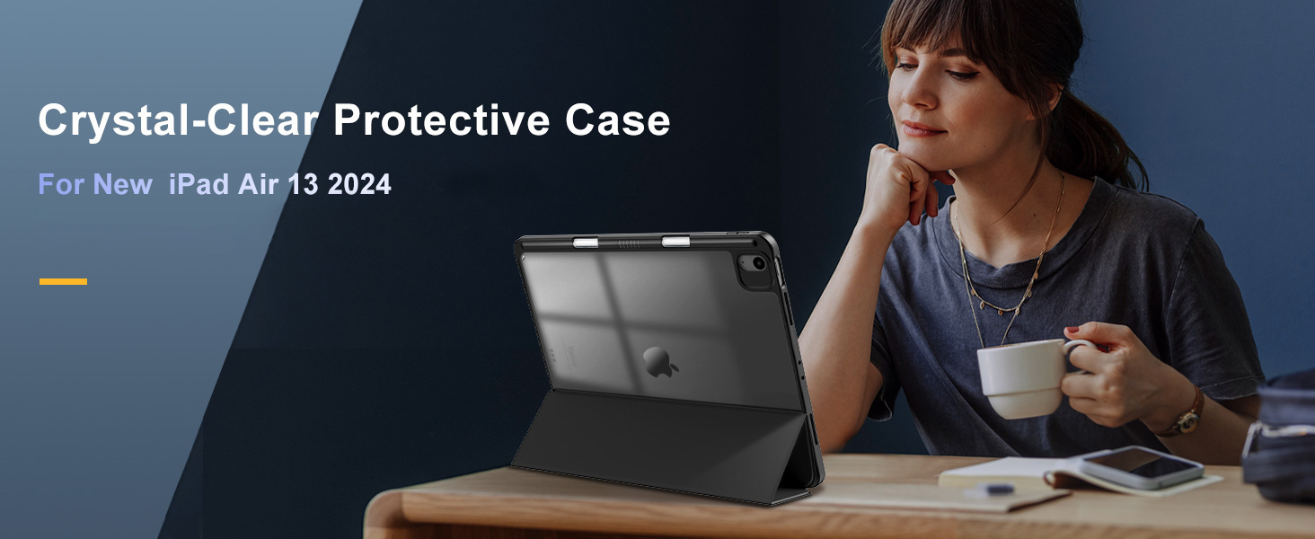 🍁(غطاء خلفي شفاف): ظهر الكمبيوتر الشخصي شفاف تمامًا لإظهار اللون الأصلي والنقش الشخصي لجهاز iPad air 13 بوصة. (ملاحظة: يرجى إزالة الغشاء الداخلي والخارجي قبل وضع هذا الجراب الواقي.)