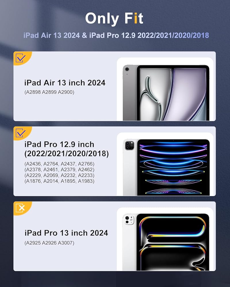 🍁【توافق مثالي】مصمم بعناية لجهاز iPad Air 13 بوصة 2024 (رقم الموديل: A2898/A2899/A2900). يرجى التحقق من الجزء الخلفي من جهاز iPad الخاص بك للعثور على رقم الطراز.